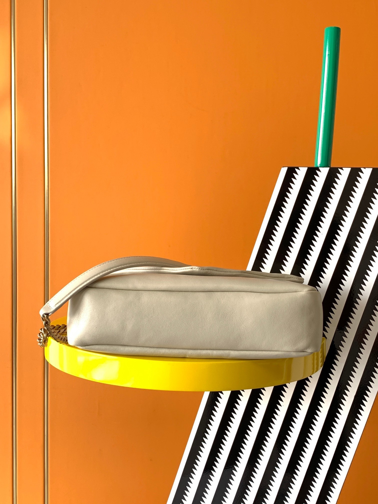 – Leather and chain strap with 27 cm drop