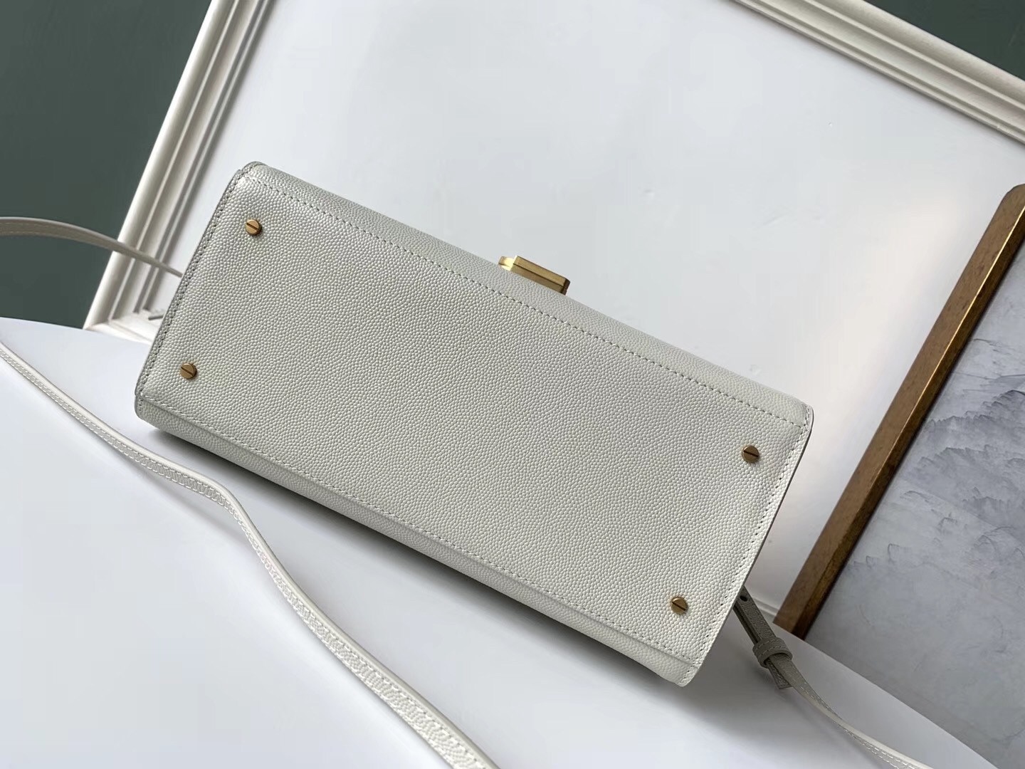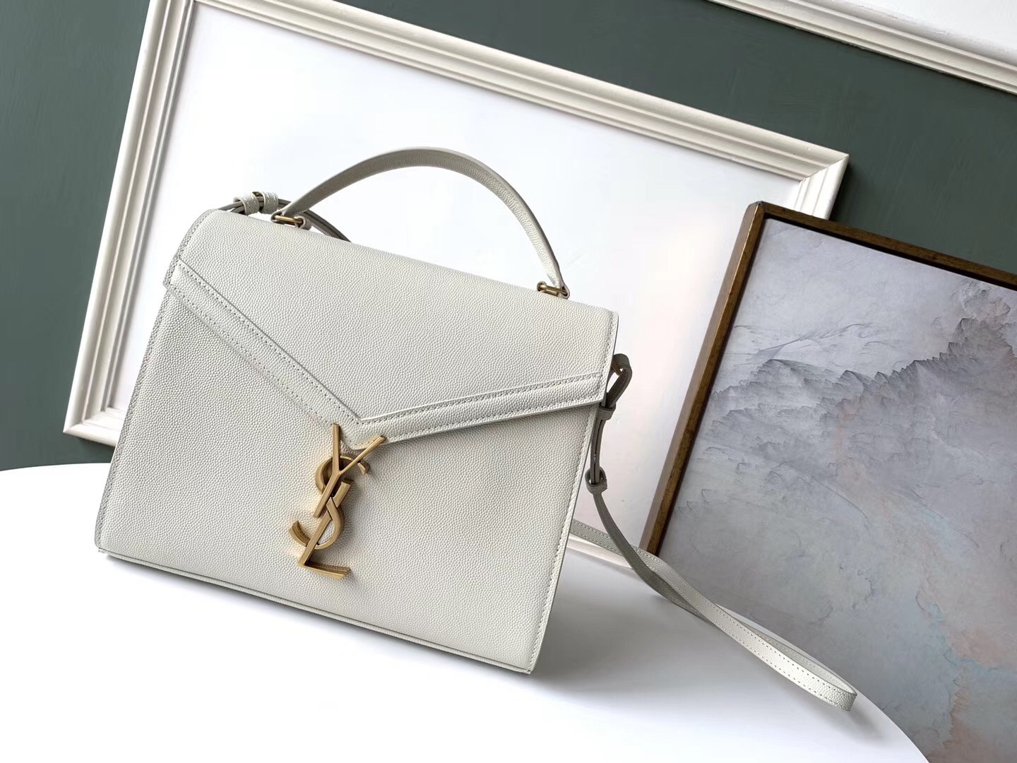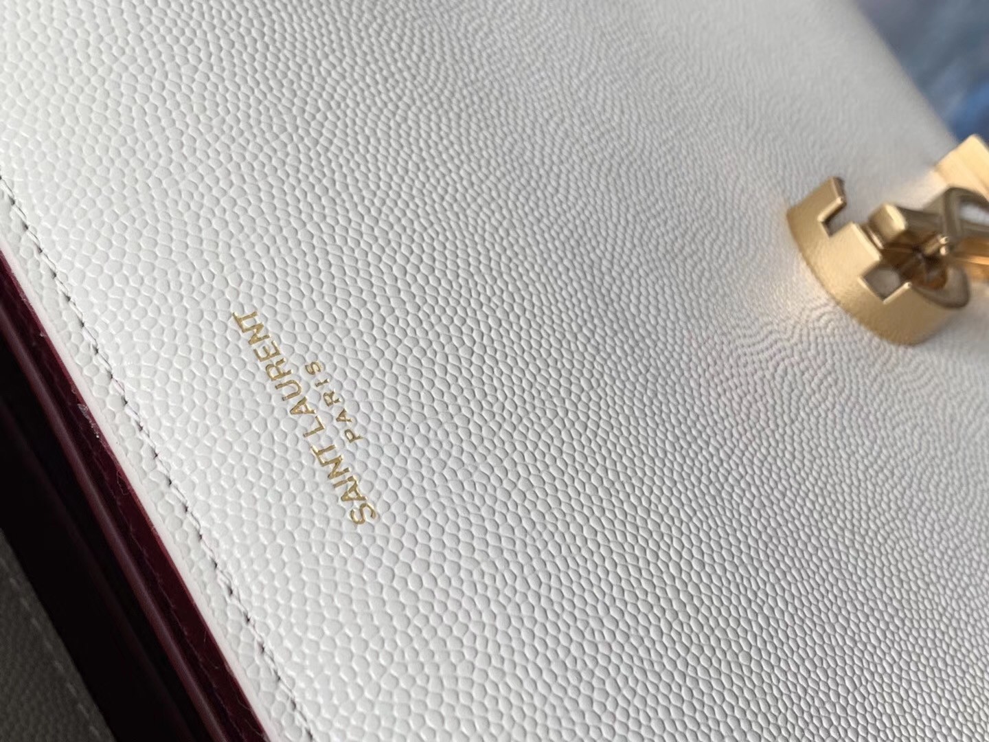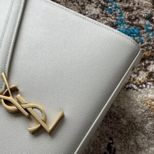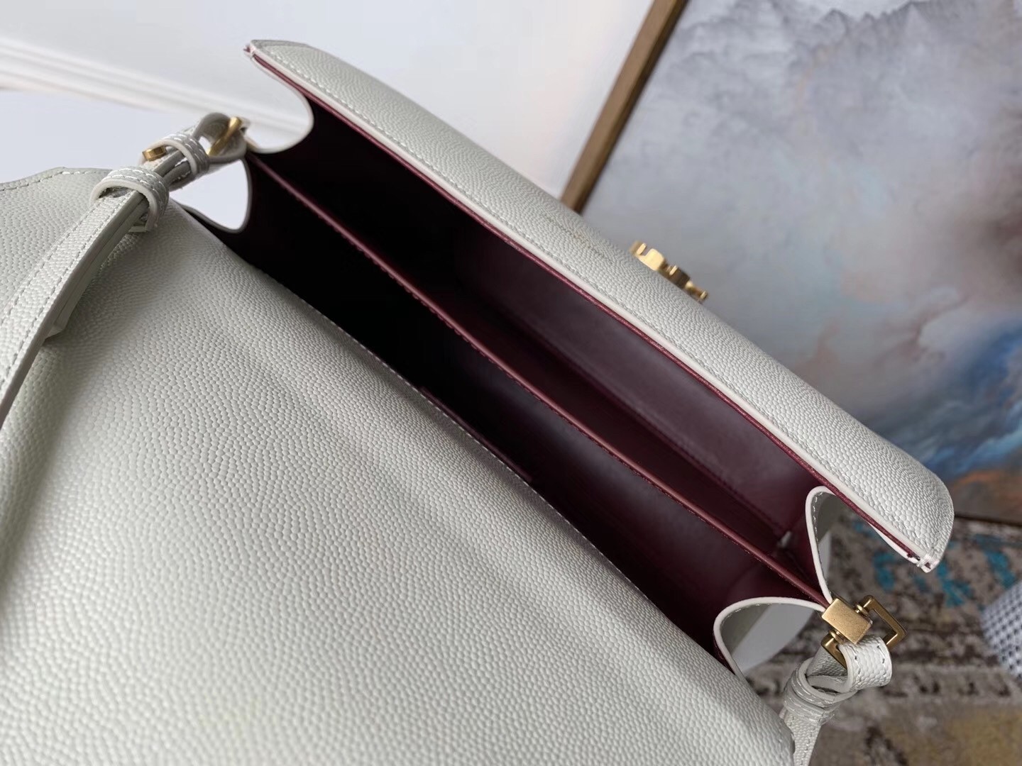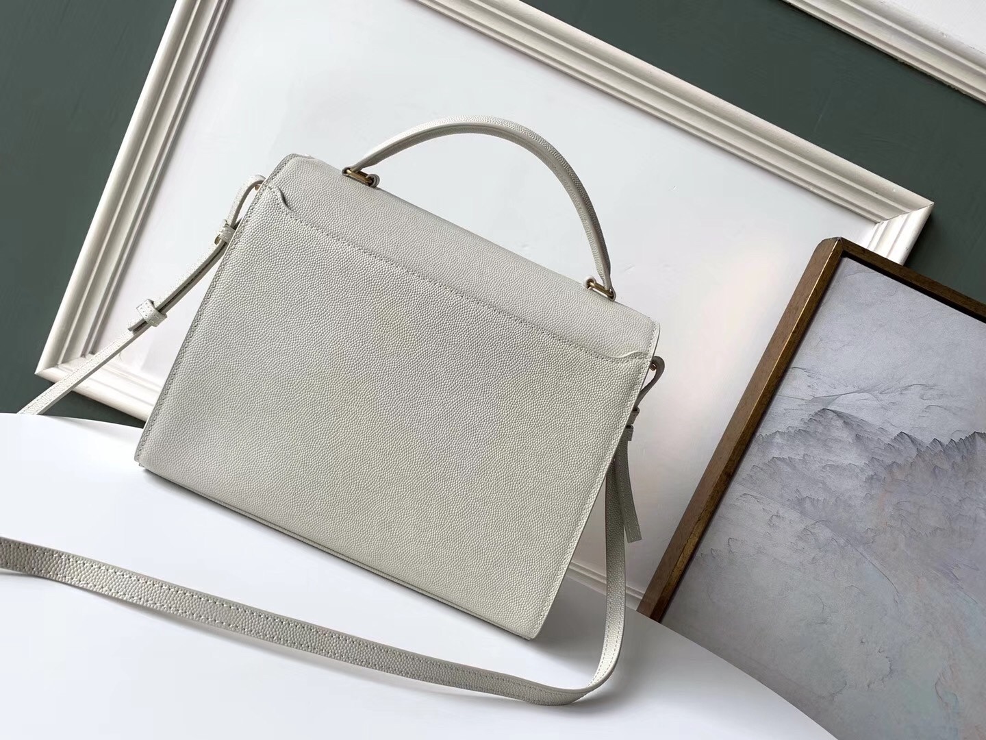 The highly covetable Saint Laurent Cassandra bag combines grained leather with the signature YSL hardware that aptly functions as a puzzle-like clasp. Perfectly sized for dusk-to-dawn endeavours, the spacious interior keeps cards, phones and other evening essentials organised with its compartmentalised design. Carry it by the ladylike top handle or sling it over the shoulder with the chain strap.