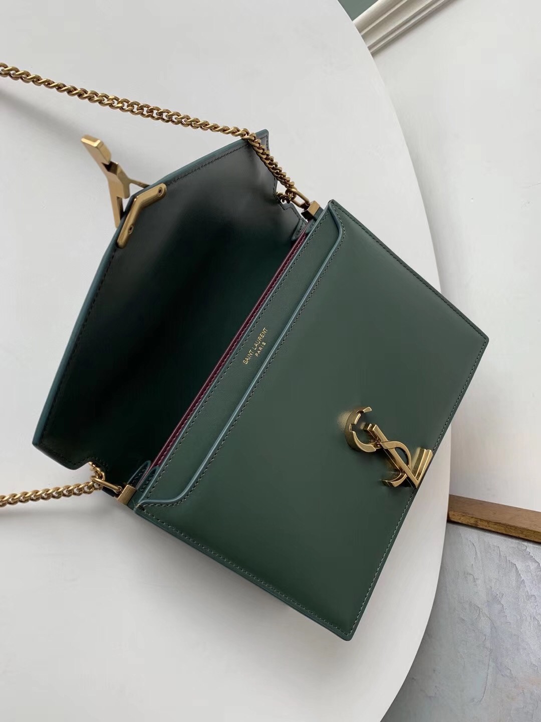Saint Laurent Dark Green Cassandra Monogram Clasp Bag