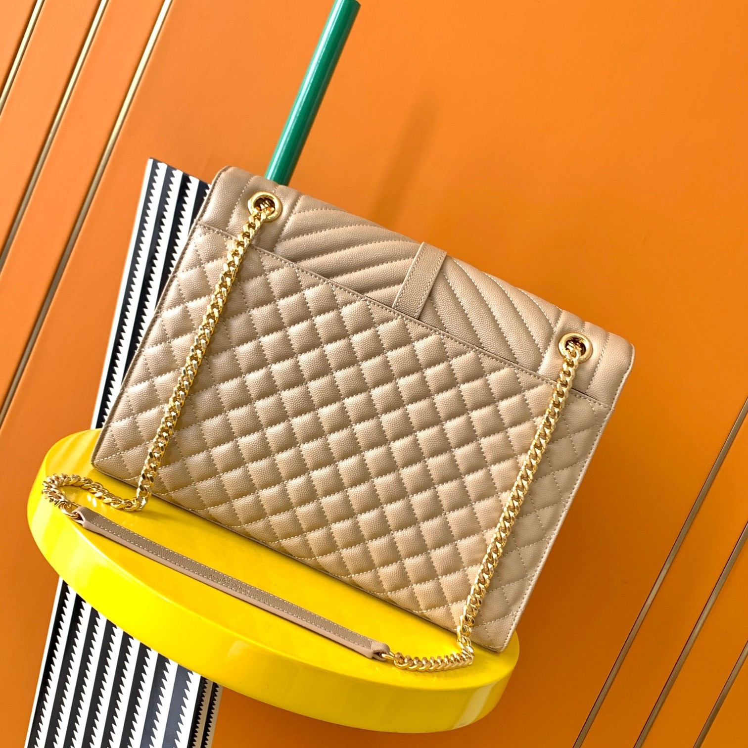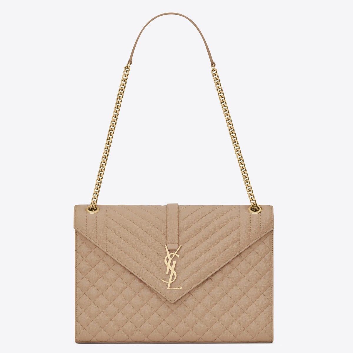 Saint Laurent Envelope Large Bag In Beige Matelasse Grained Leather