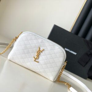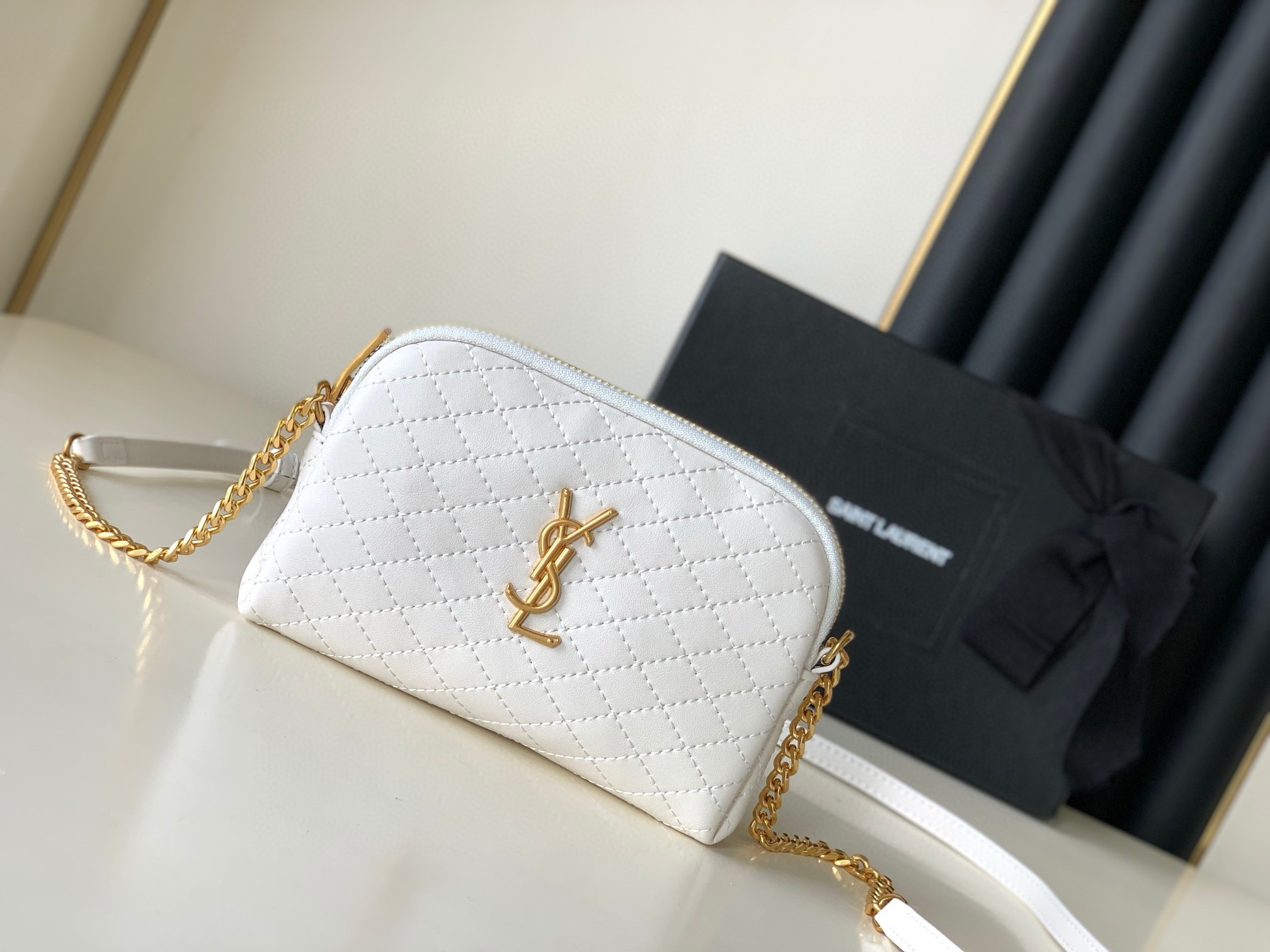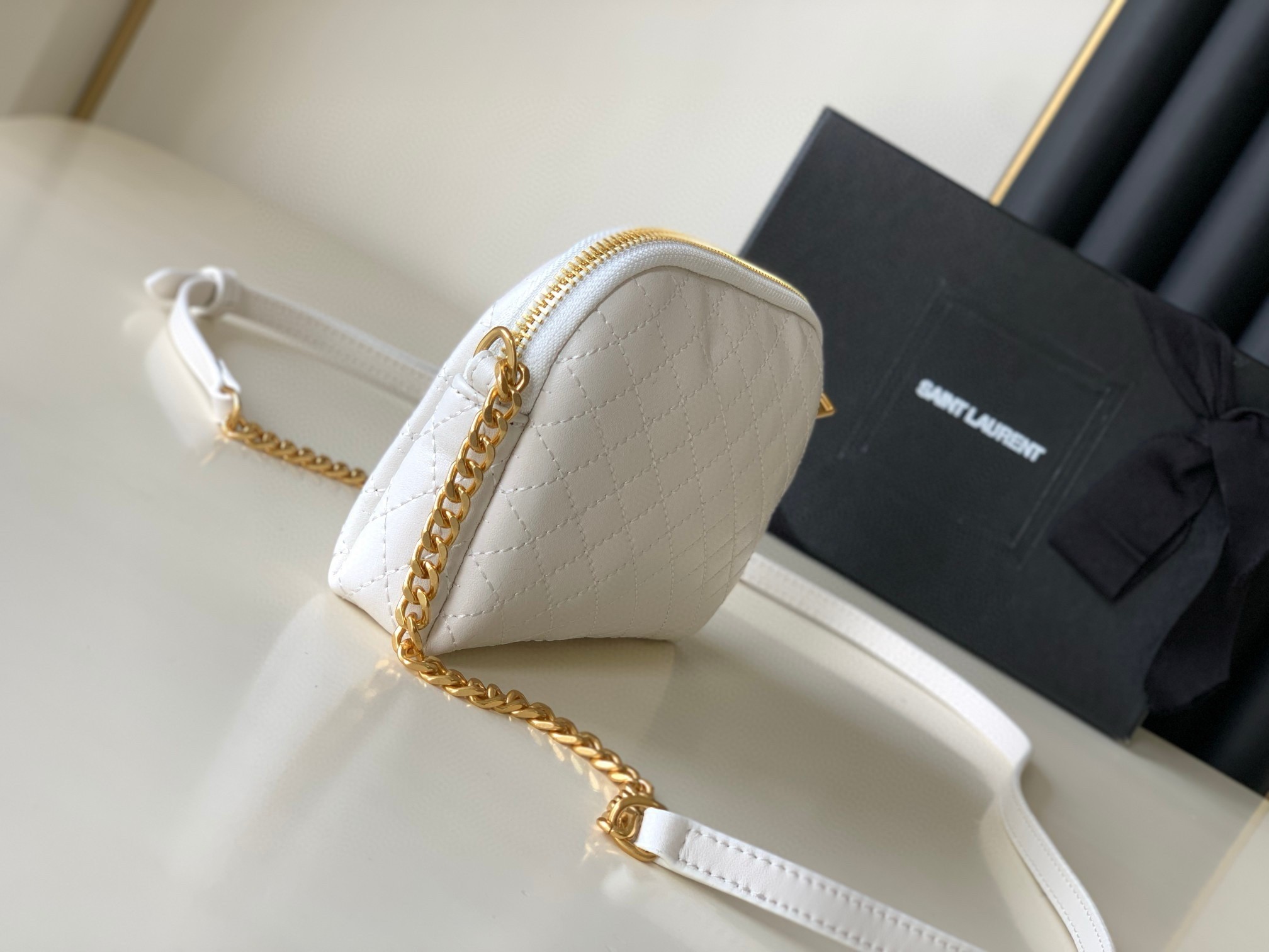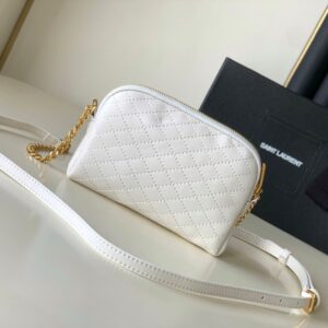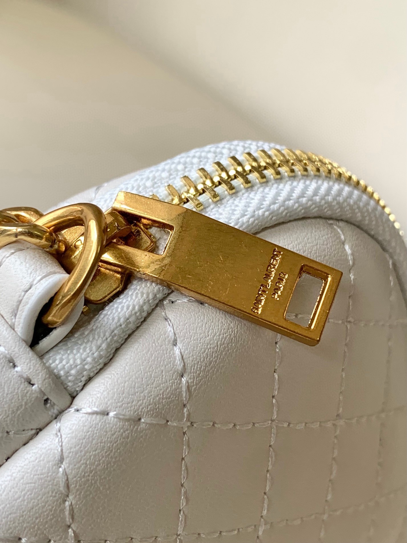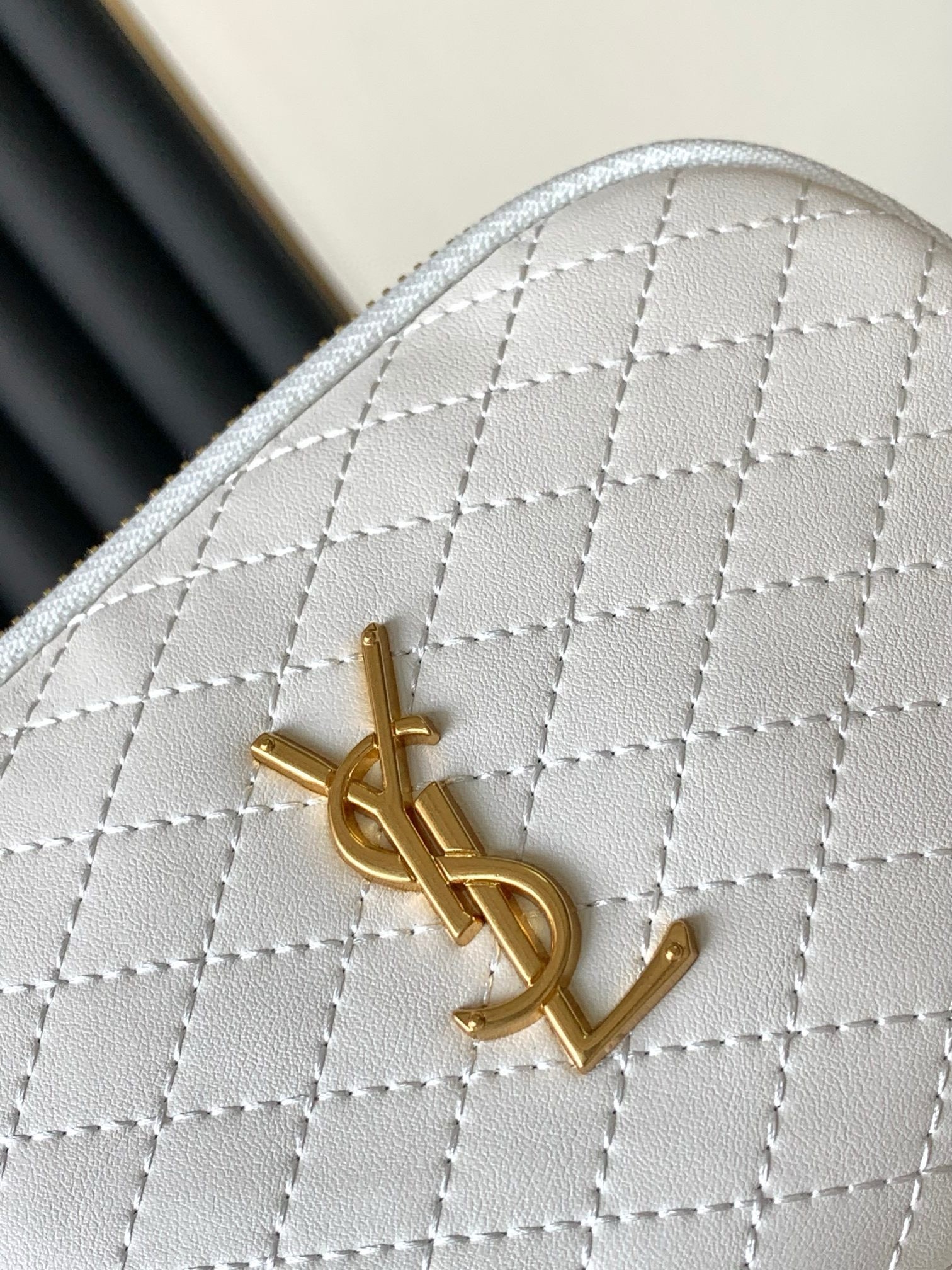 Saint Laurent Gaby Zipped Pouch in White Quilted Lambskin