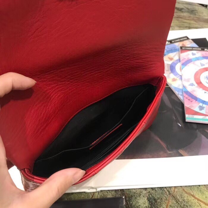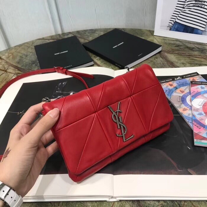 Saint Laurent Jamie Chain Wallet In Red Patchwork Lambskin