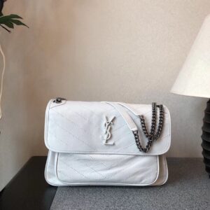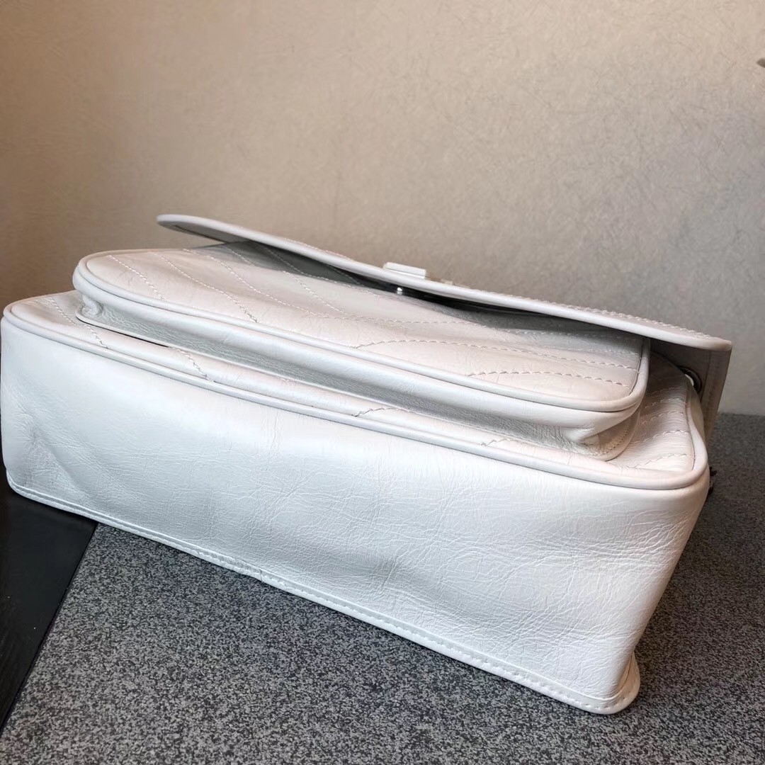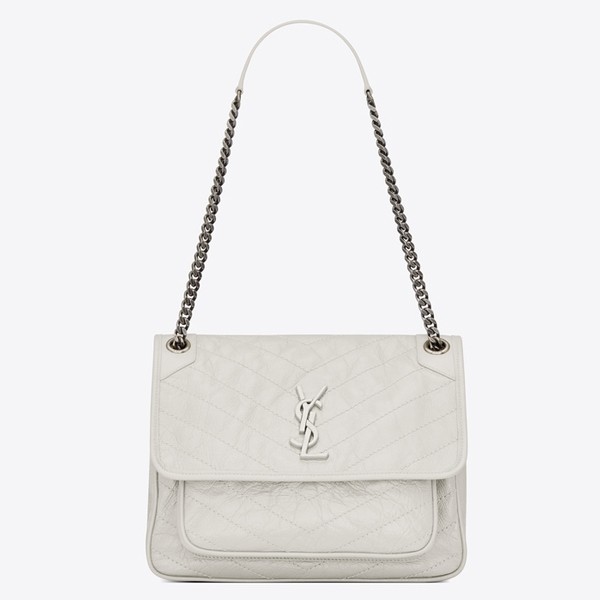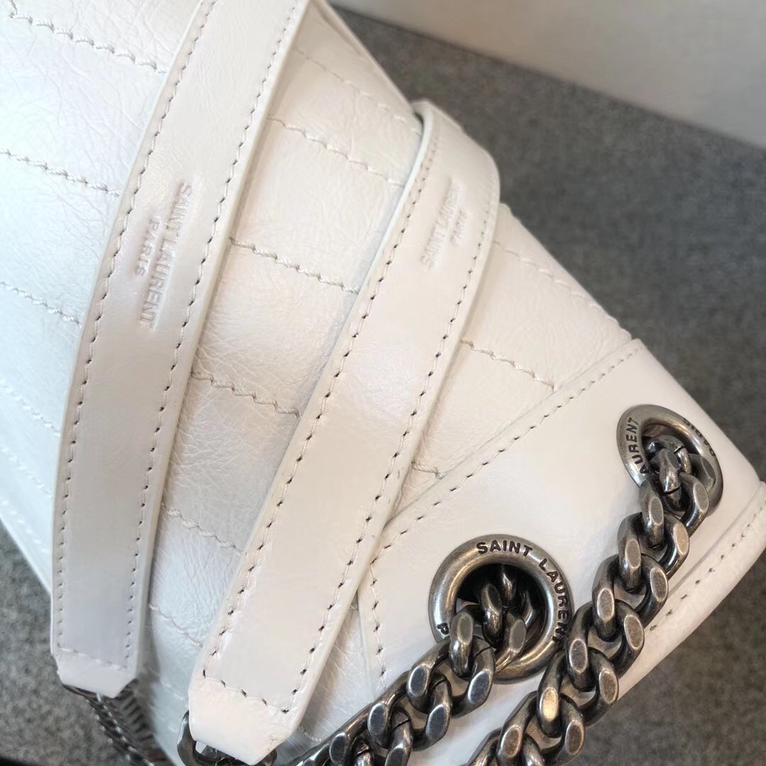 Saint Laurent Large Niki Chain Bag In White Crinkled Leather