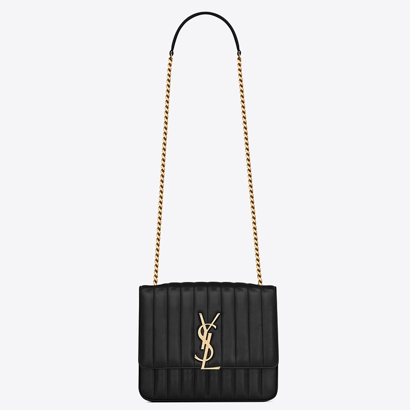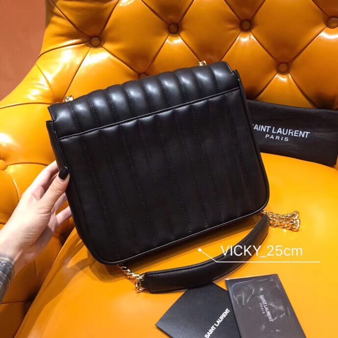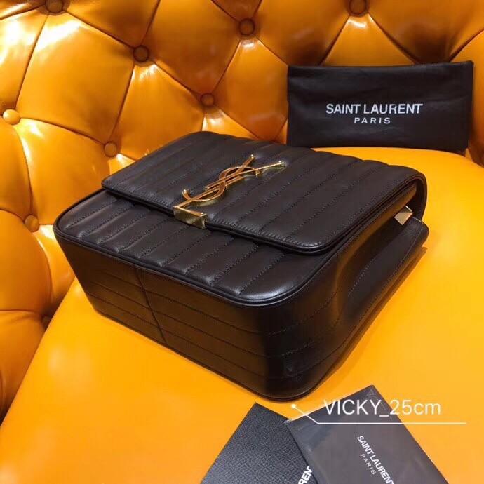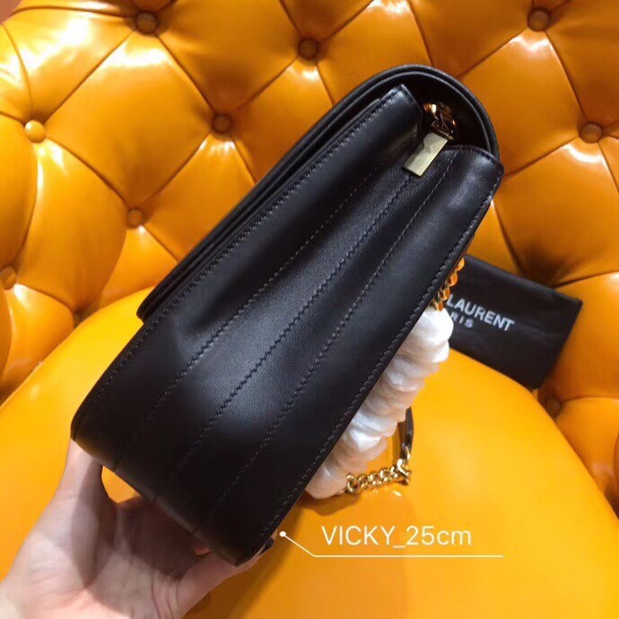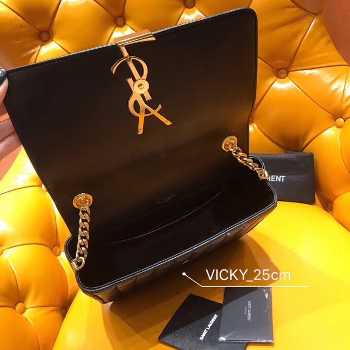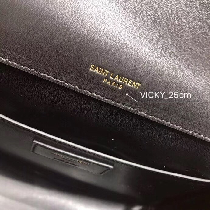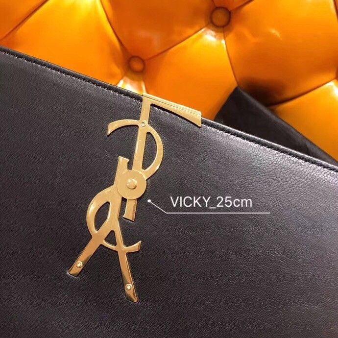 Saint Laurent Large Vicky Bag In Black Lambskin