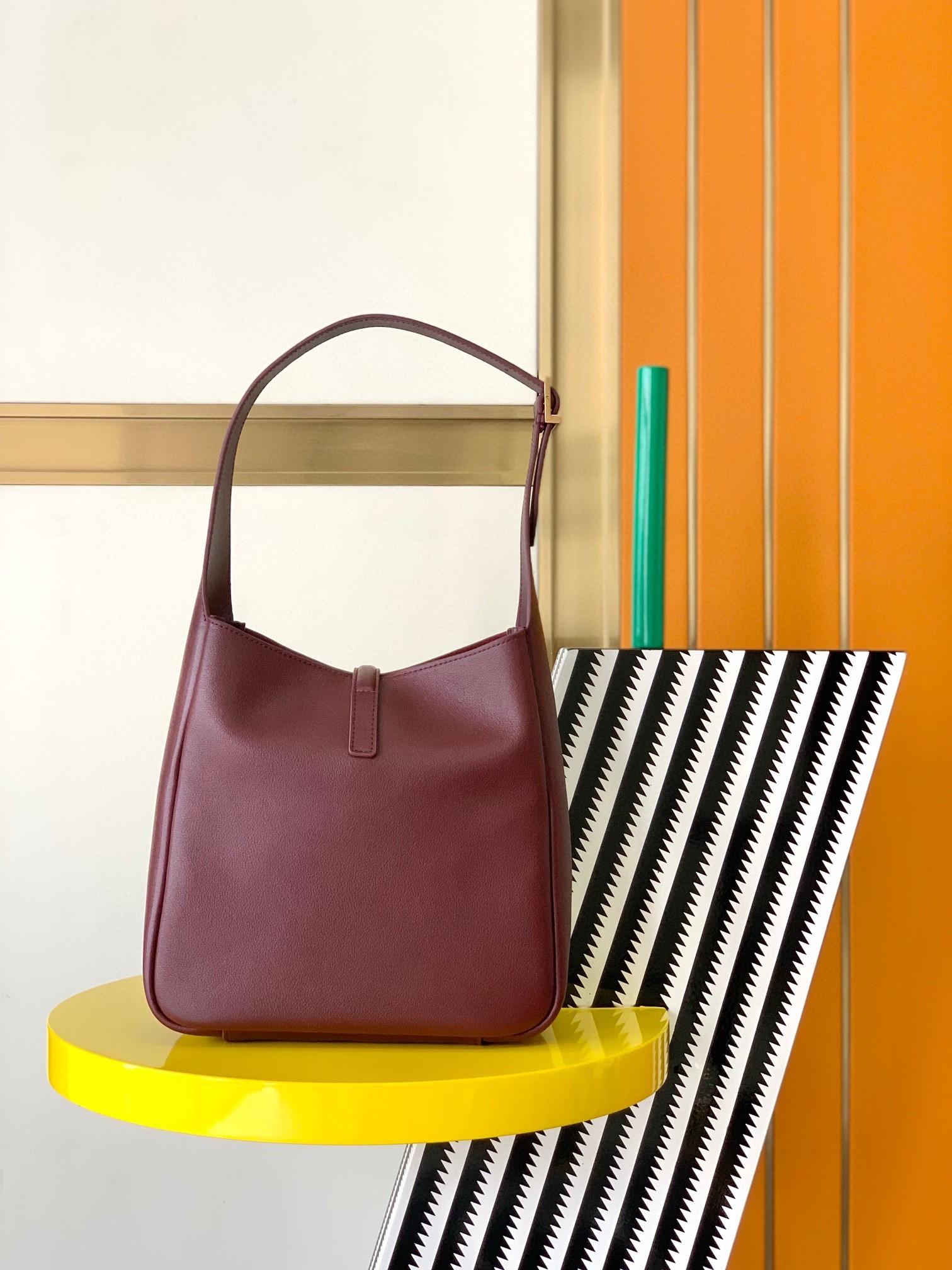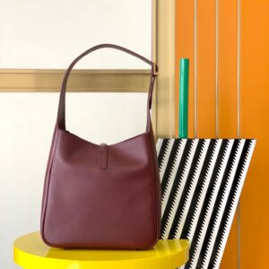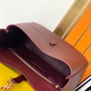 Saint Laurent Le 5 À 7 Soft Small Shoulder Bag in Bordeaux Leather