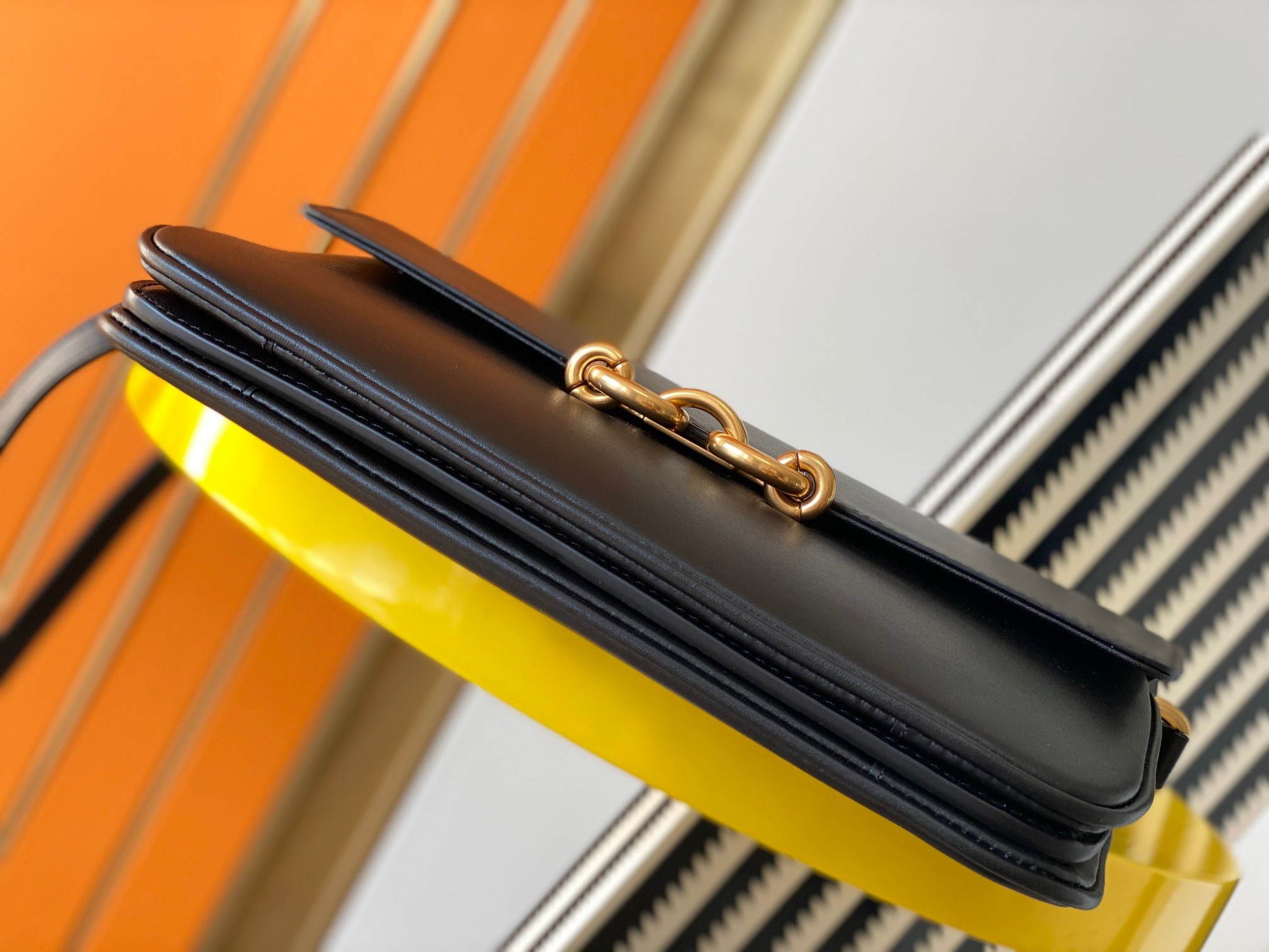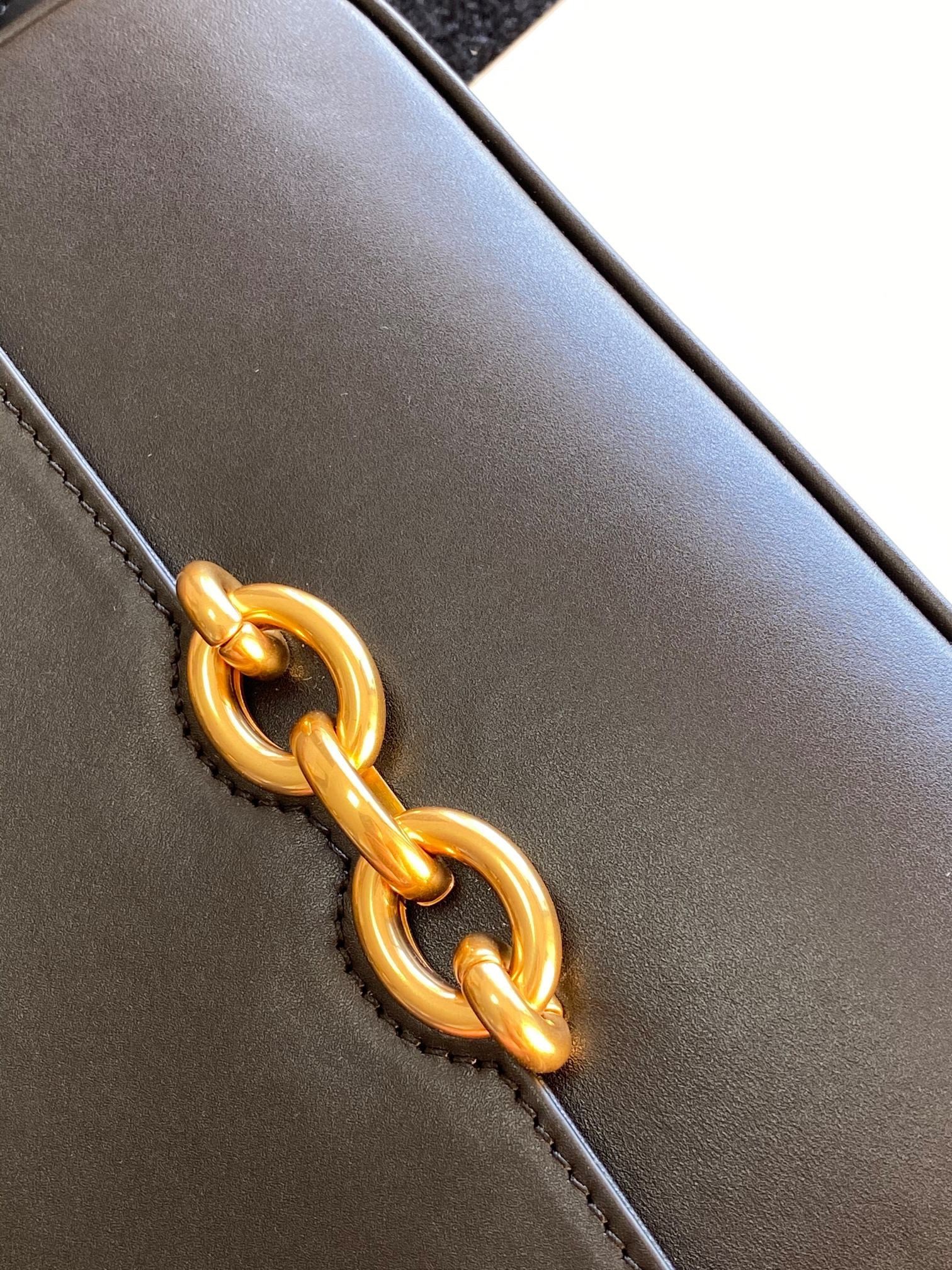 – Front flap with magnetic closure decorated with a magnetic curb-link chain detail