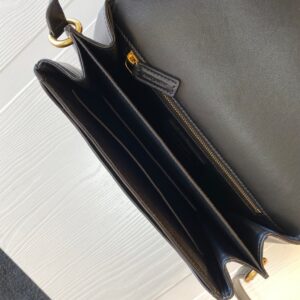 – Interior two gusseted main compartments, one zip pocket, one flat pocket, one dossier pocket at the front