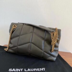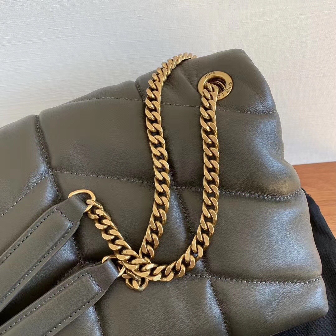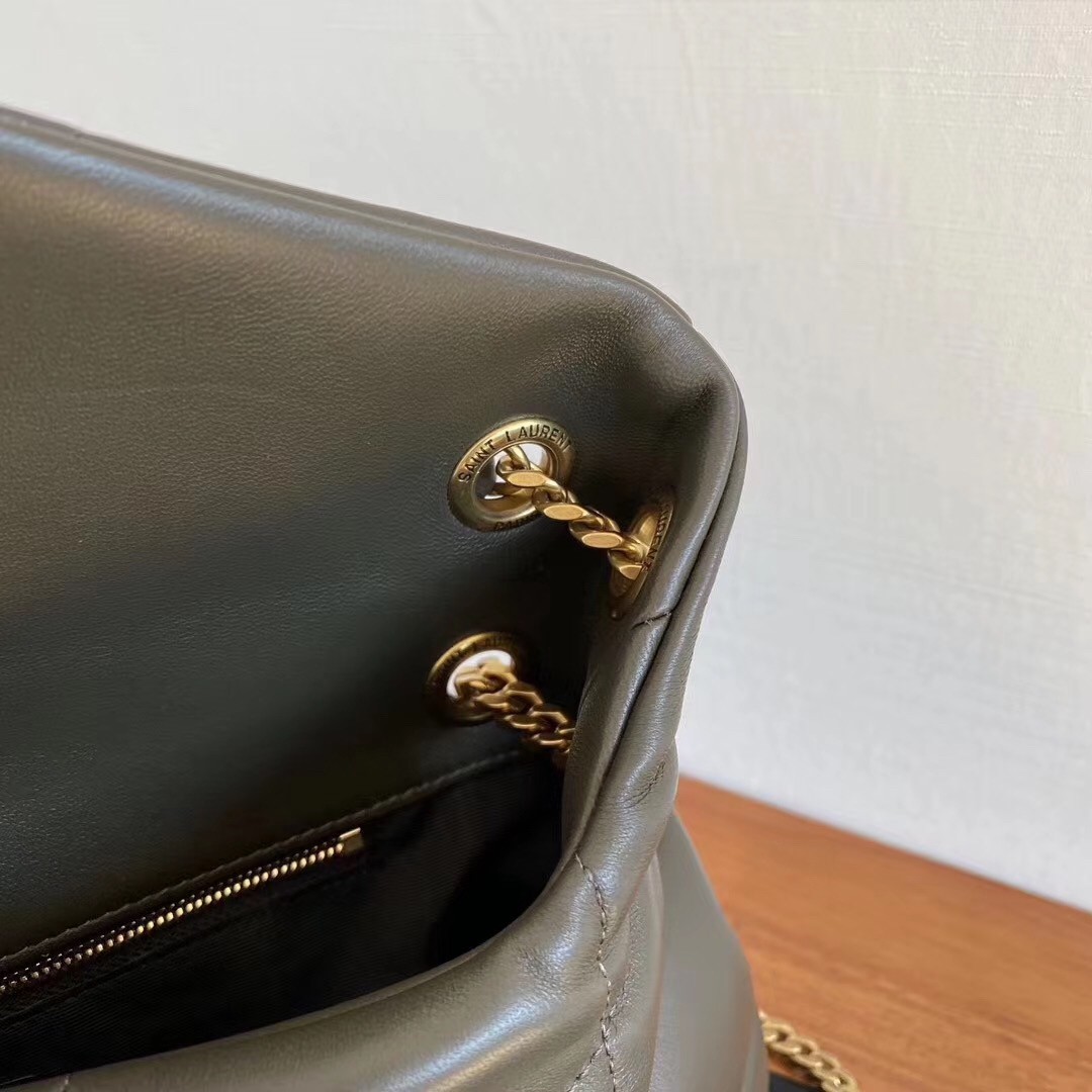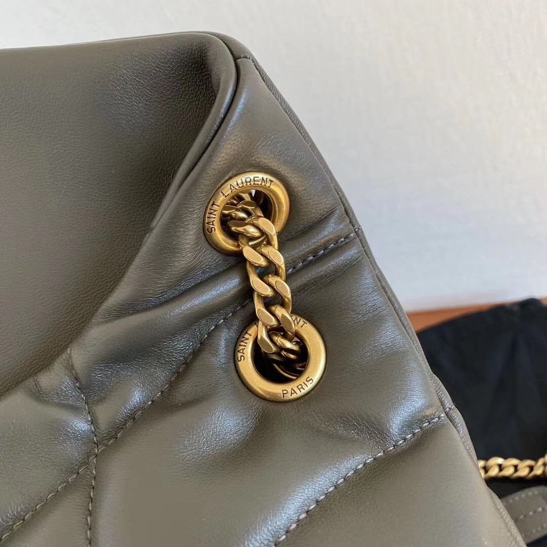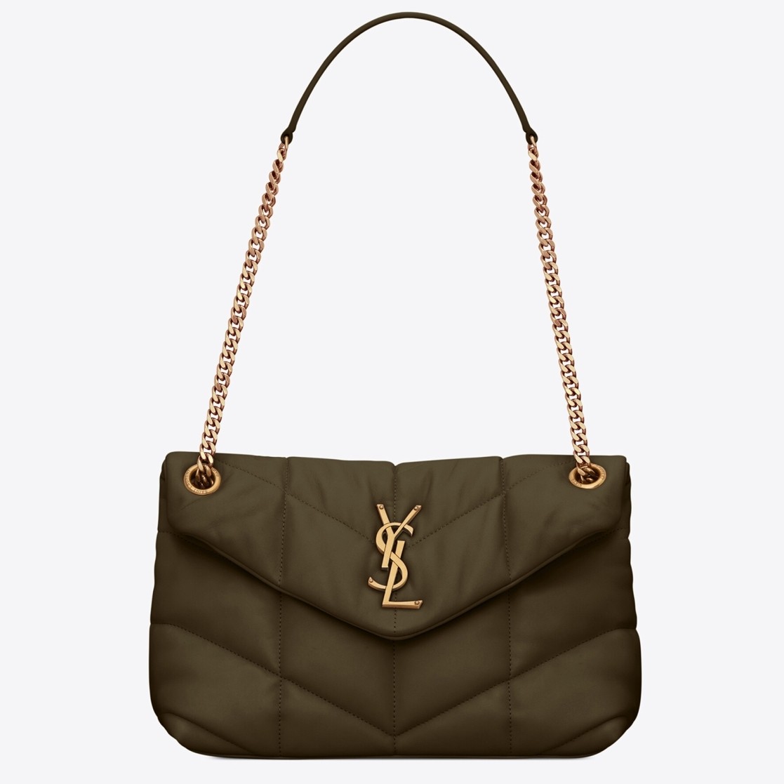 Saint Laurent Loulou Puffer Small Bag In Green Lambskin