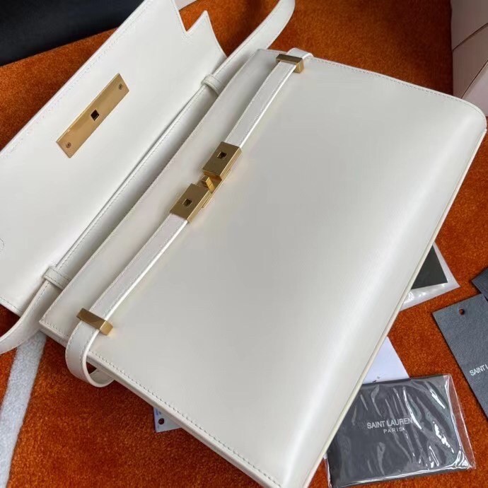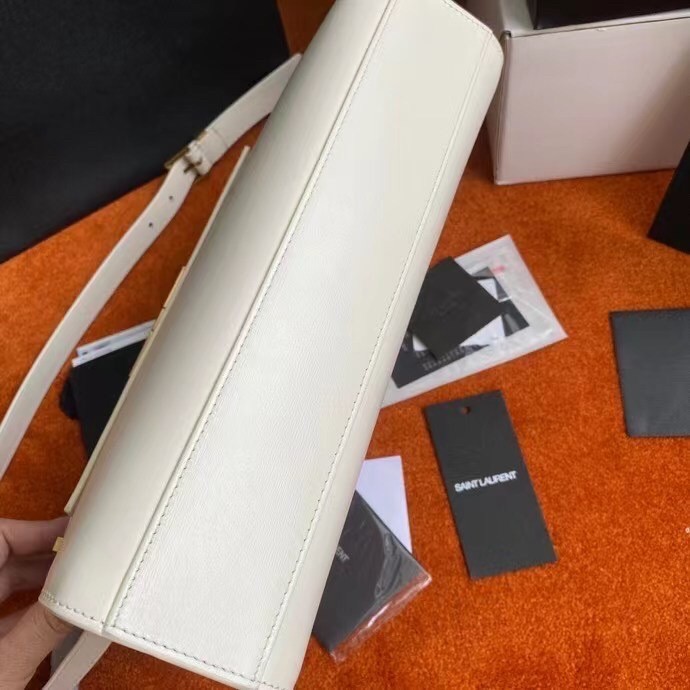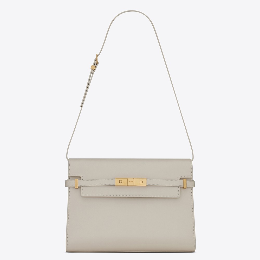 Saint Laurent Manhattan Baguette Bag In White Calfskin