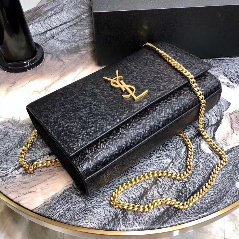 Saint Laurent Medium Kate Bag In Black Grained Leather