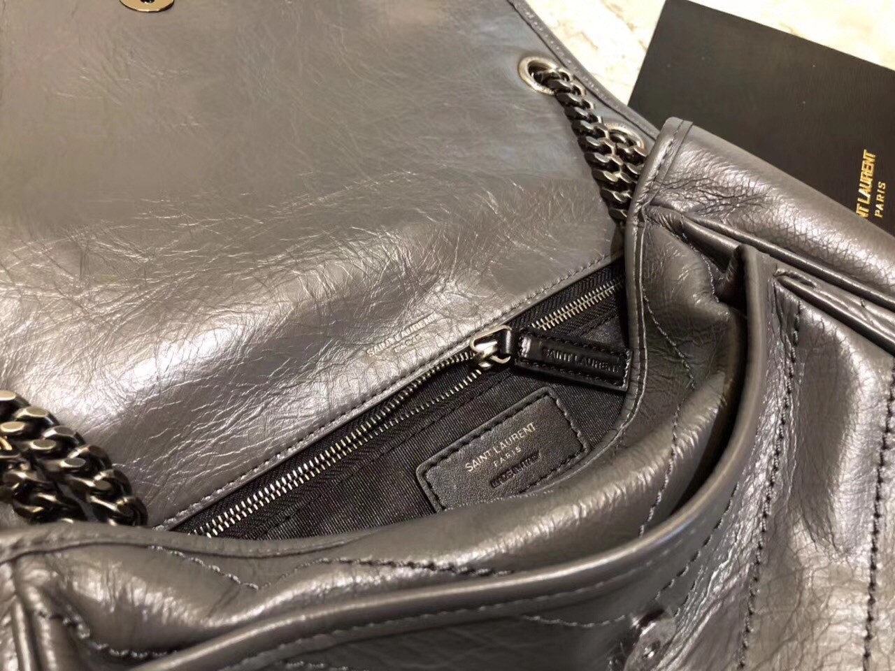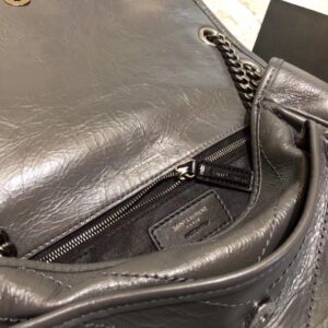 – One central compartment, one inside pocket, one zippered pocket, one open pocket in back, and one pocket under flap
