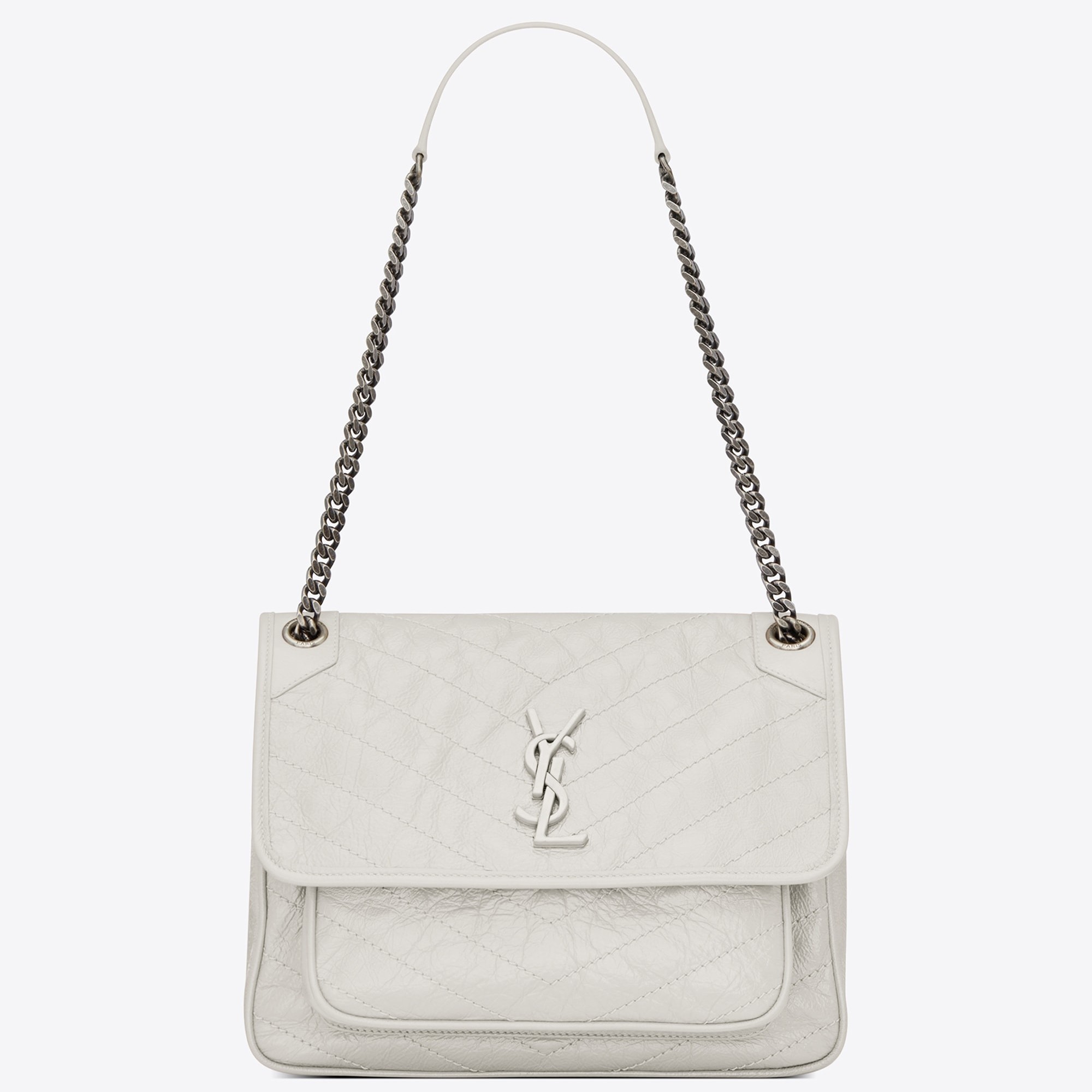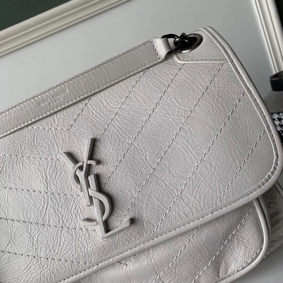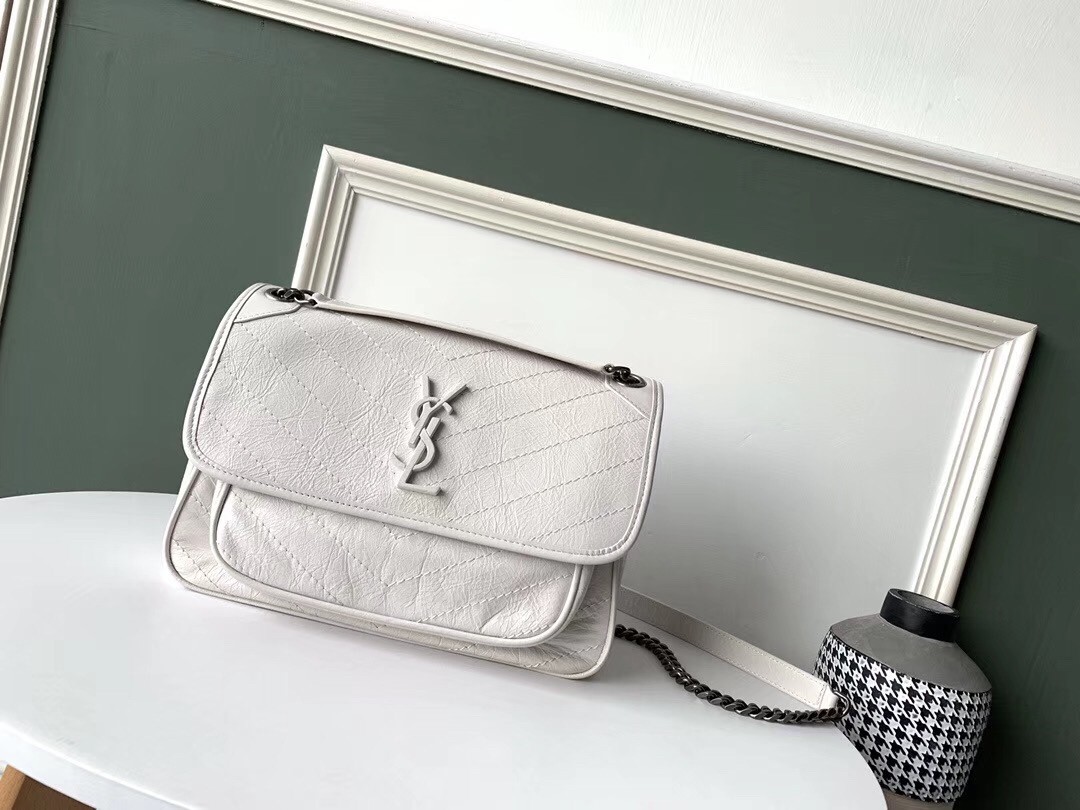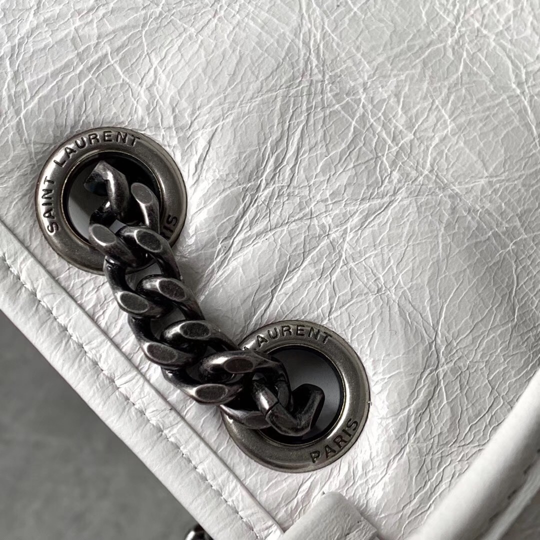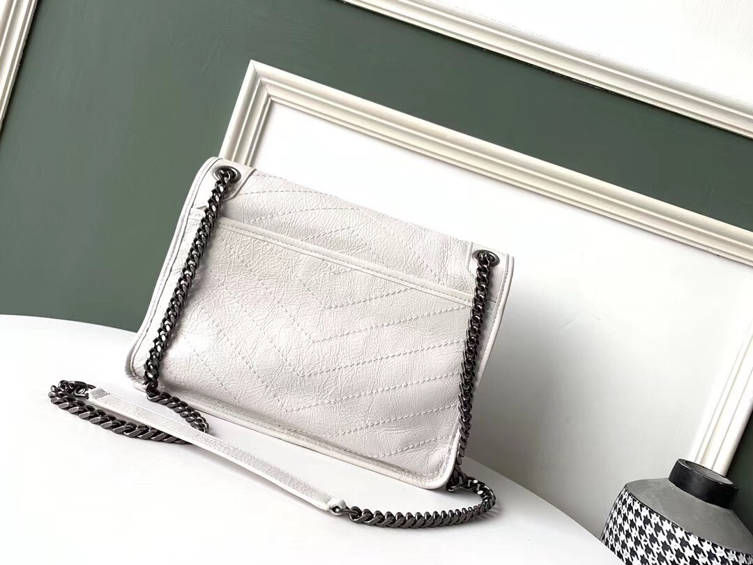 Saint Laurent Medium Niki Bag In White Crinkled Leather