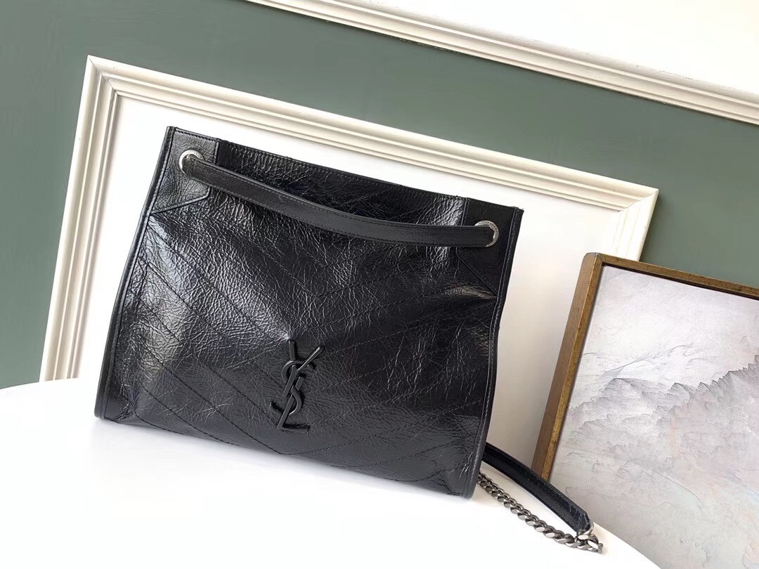 Saint Laurent Medium Niki Shopping Bag In Black Leather
