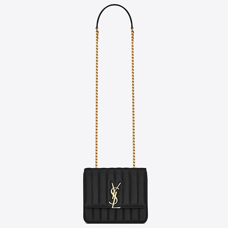 Saint Laurent Medium Vicky Bag In Black Lambskin