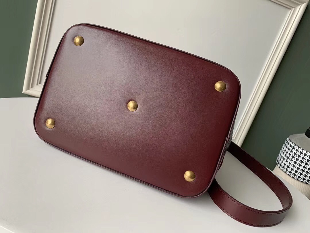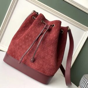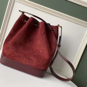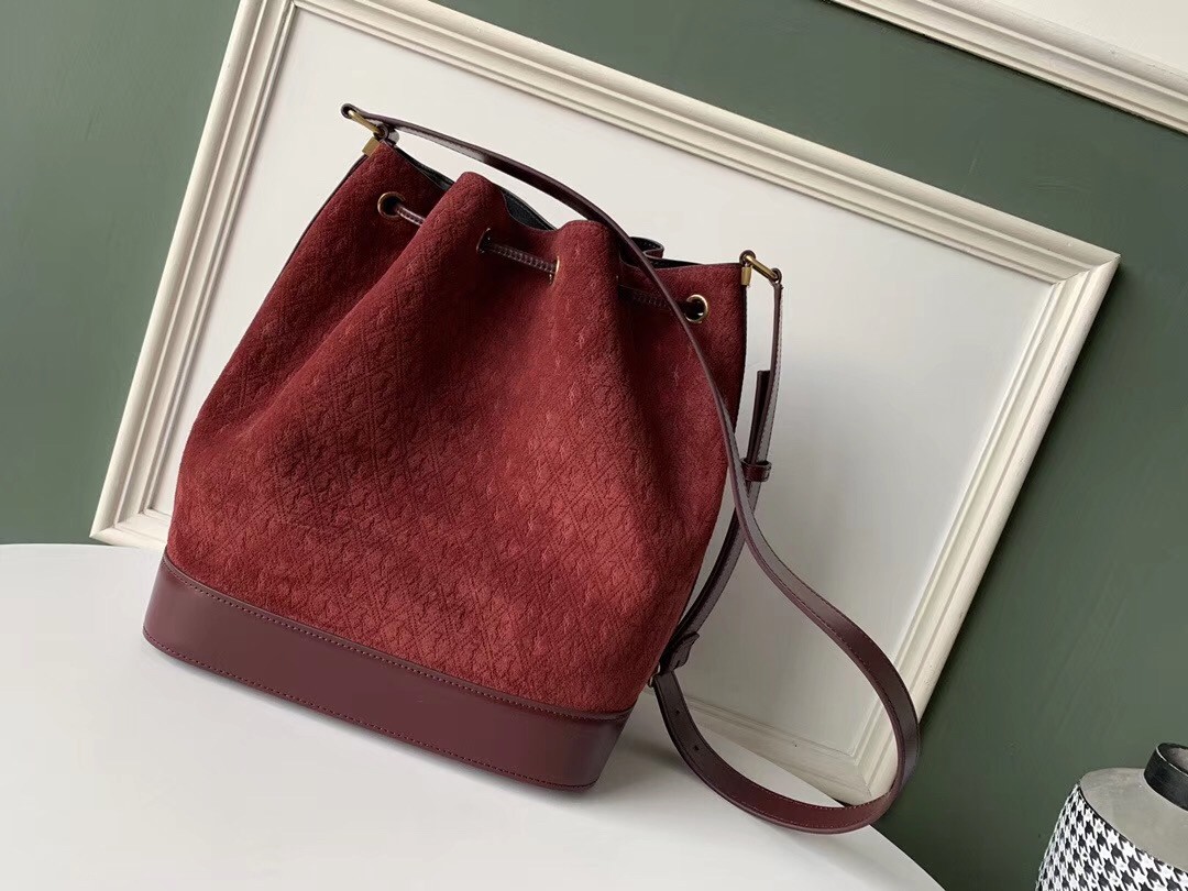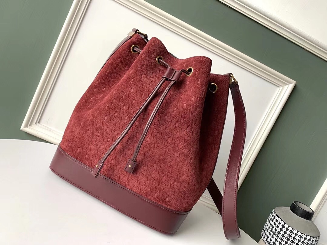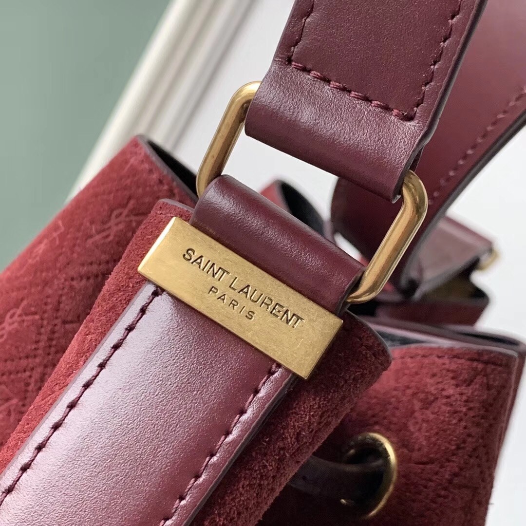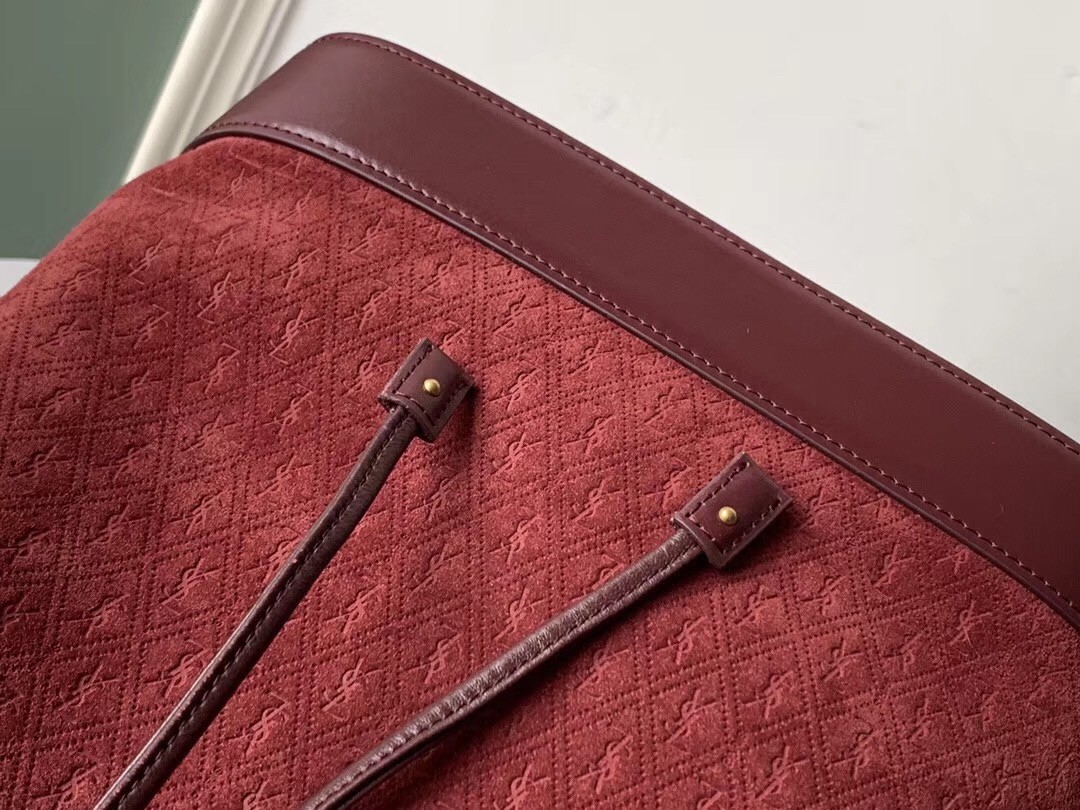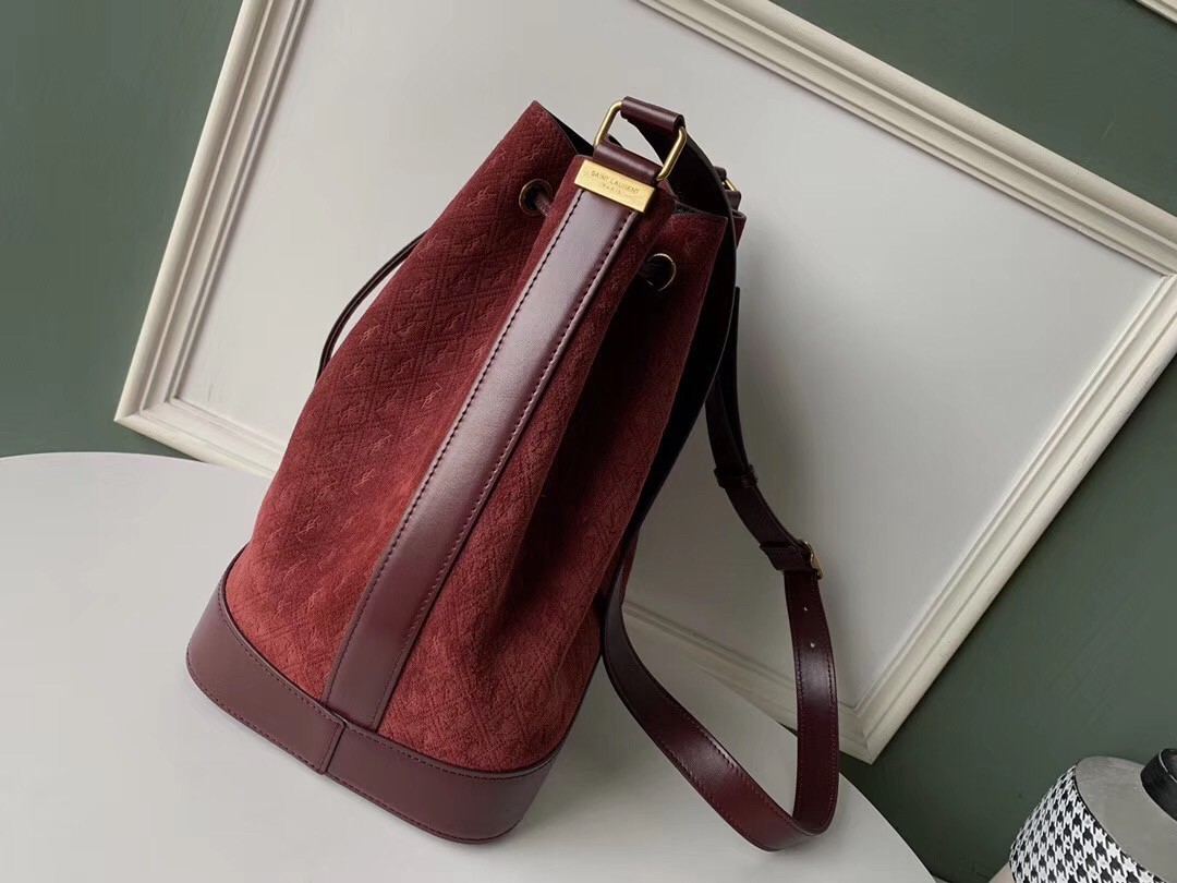 Saint Laurent Monogram All Over Bucket Bag In Bordeaux Suede