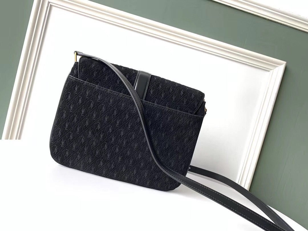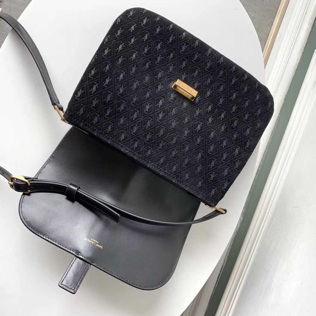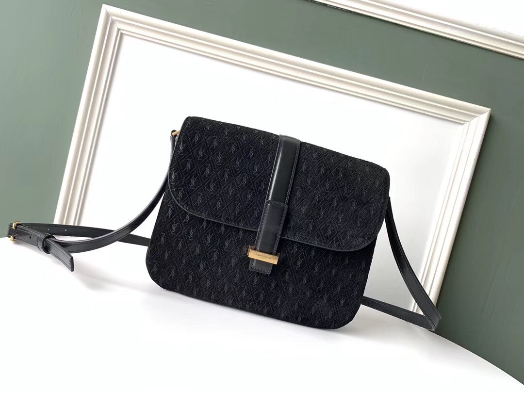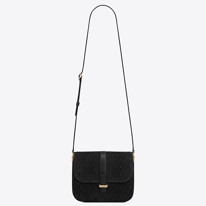 Saint Laurent Monogram All Over Small Satchel In Black Suede