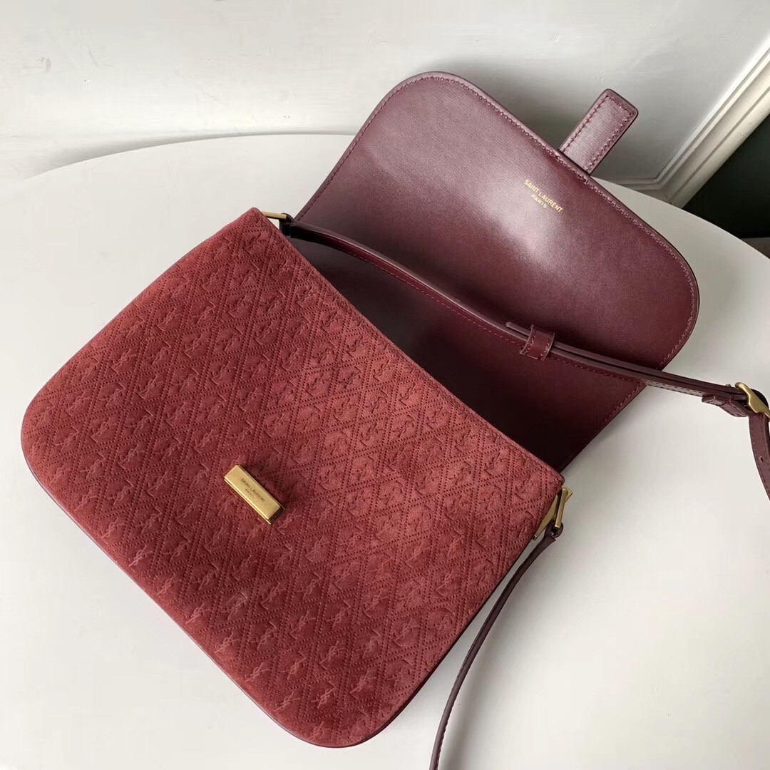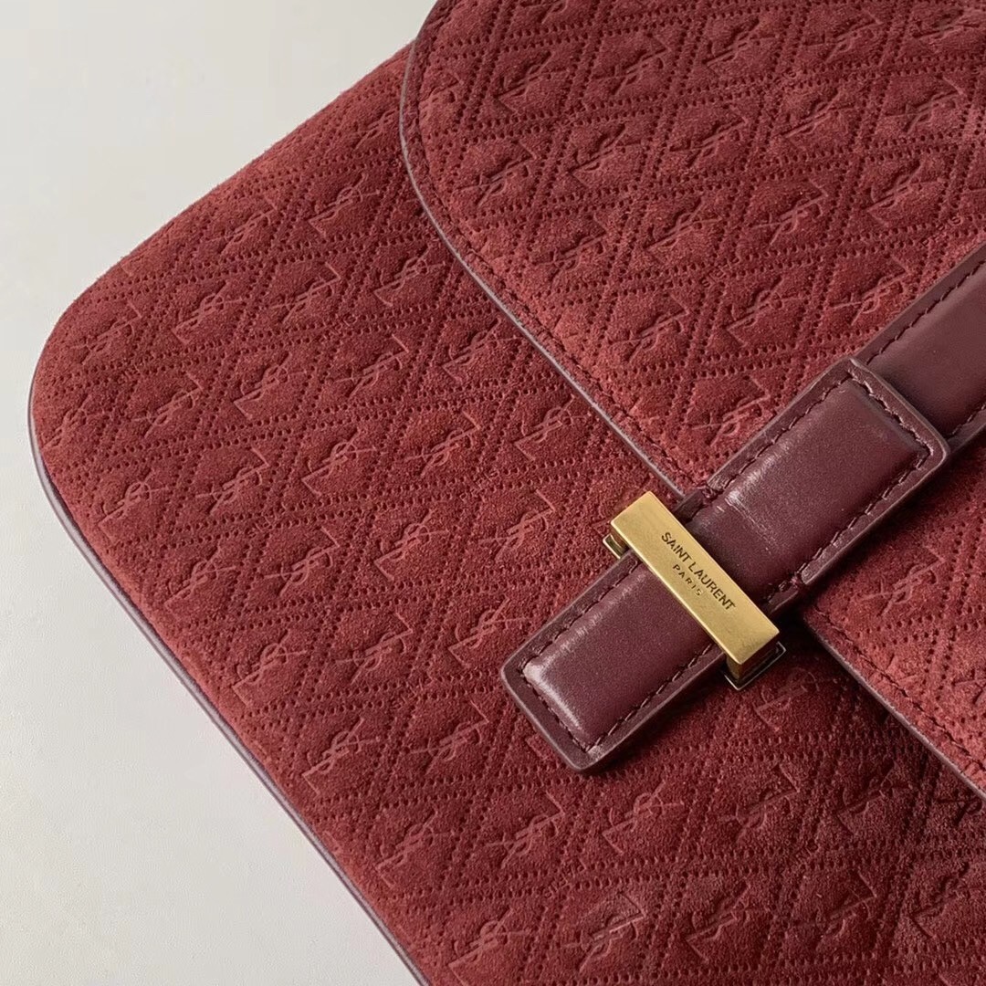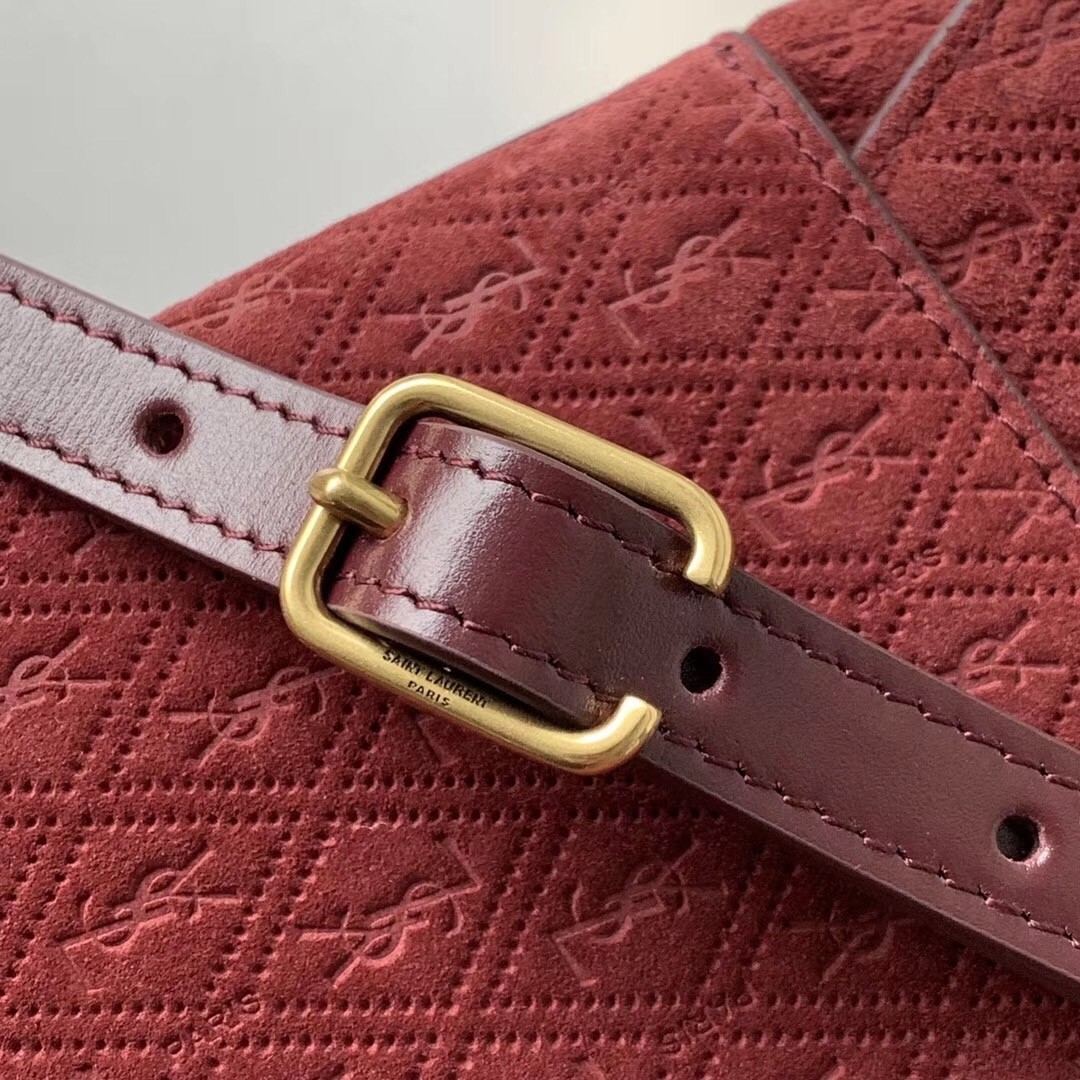 Saint Laurent Monogram All Over Small Satchel In Bordeaux Suede
