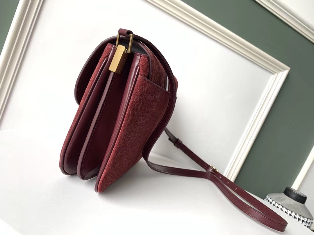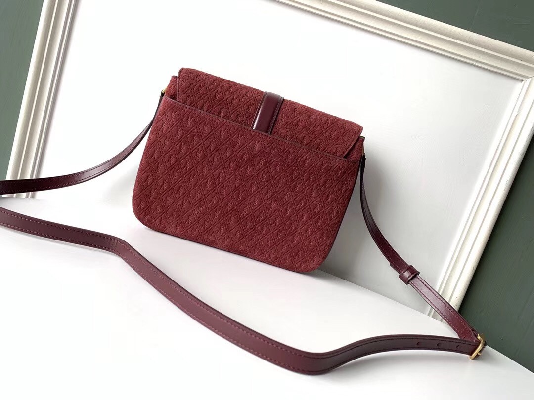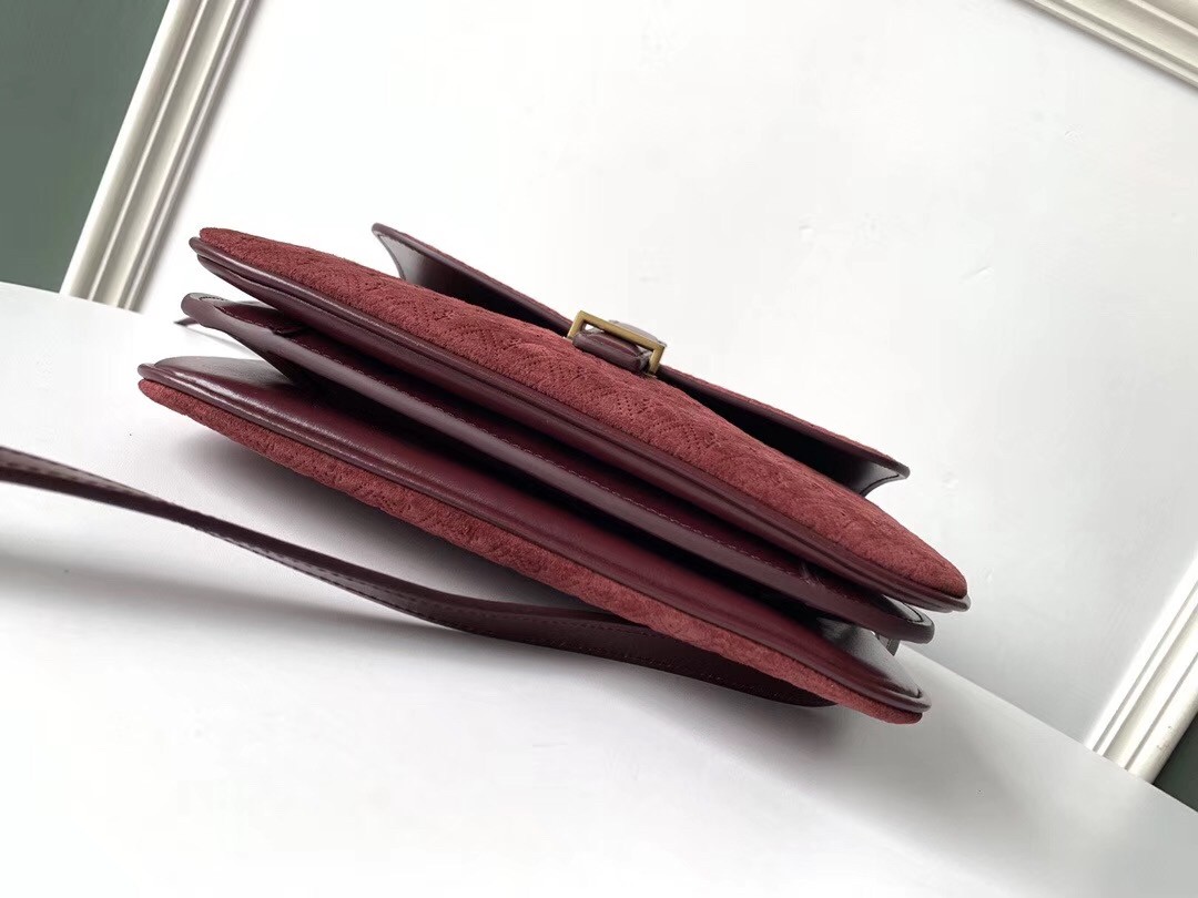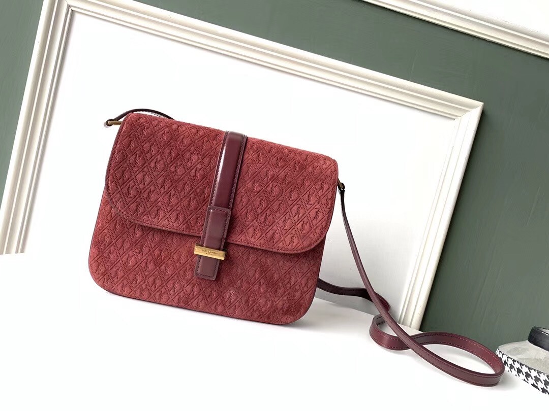 Saint Laurent Monogram All Over Small Satchel In Bordeaux Suede