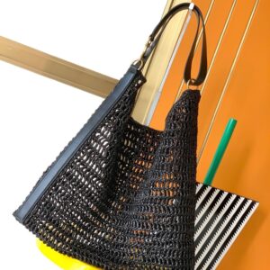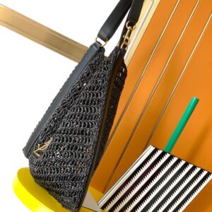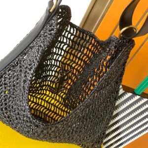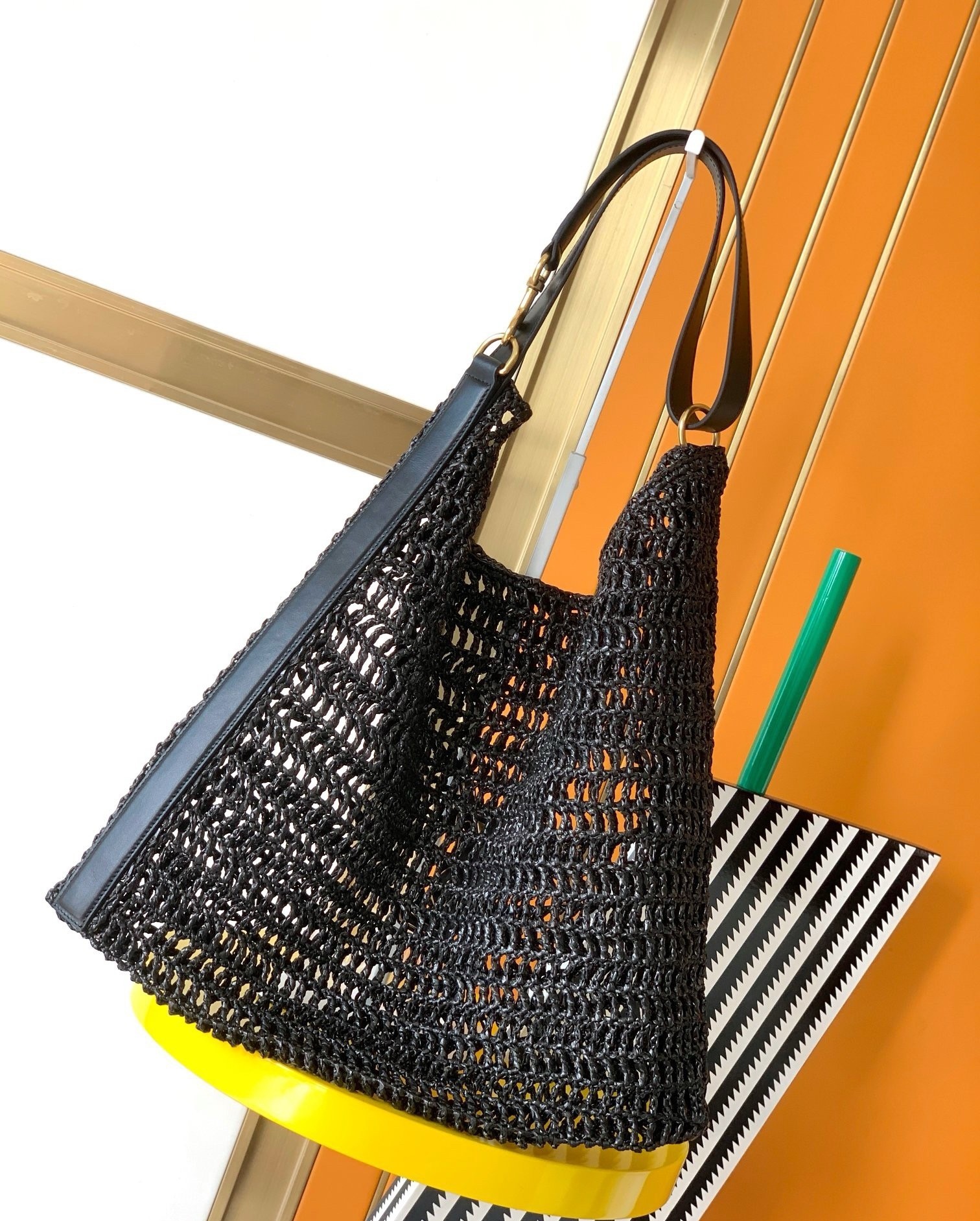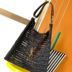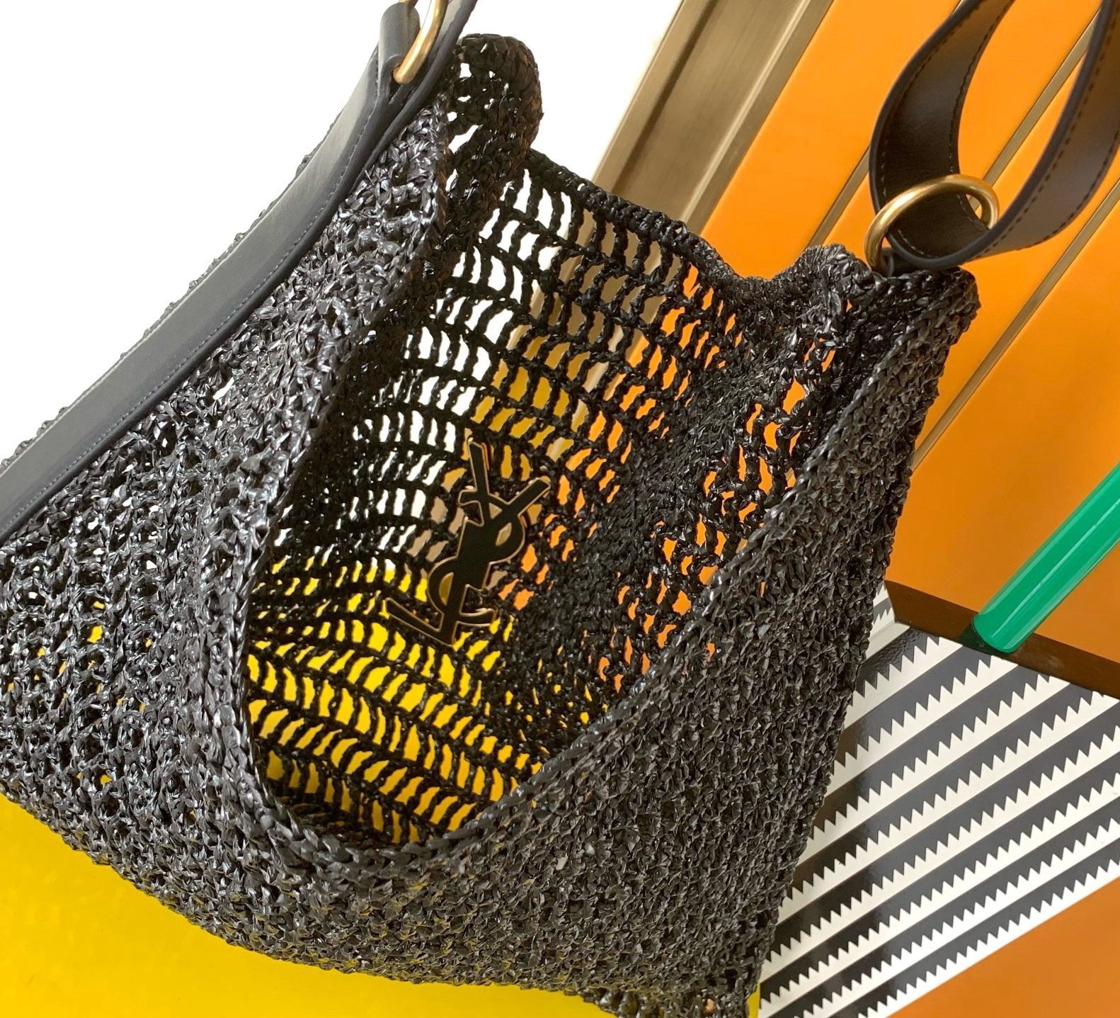 Saint Laurent Oxalis Shoulder Bag in Black Raffia