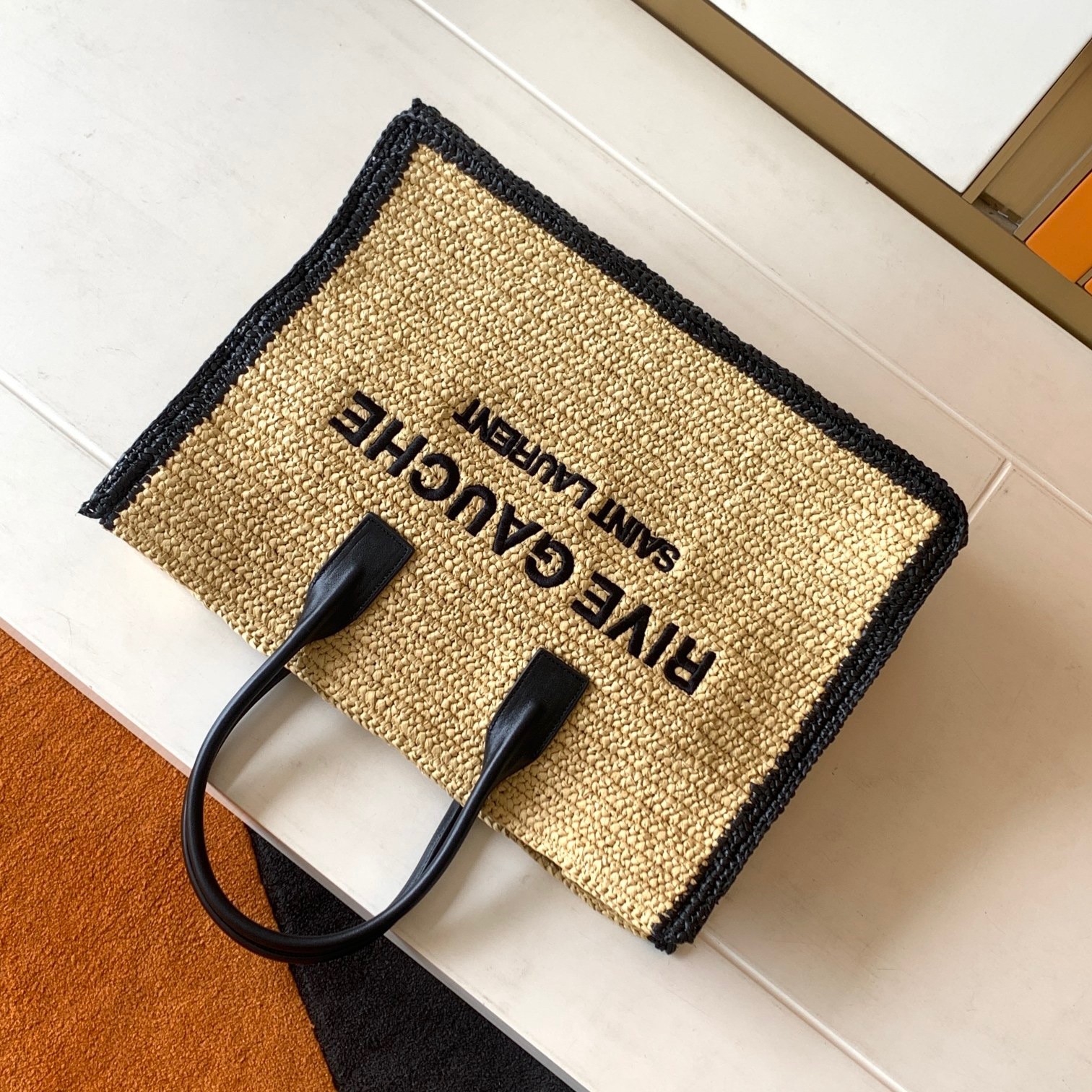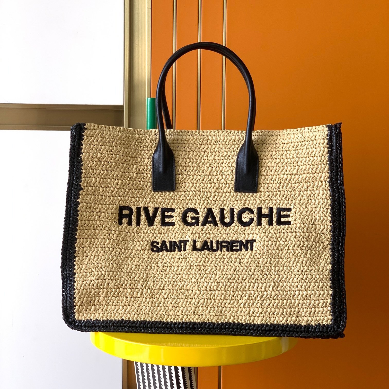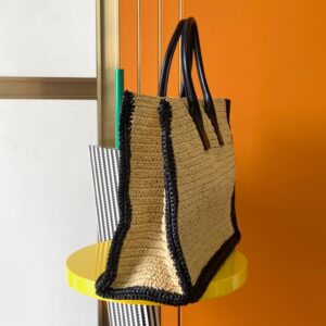 Saint Laurent Rive Gauche Tote Bag in Beige Raffia and Leather