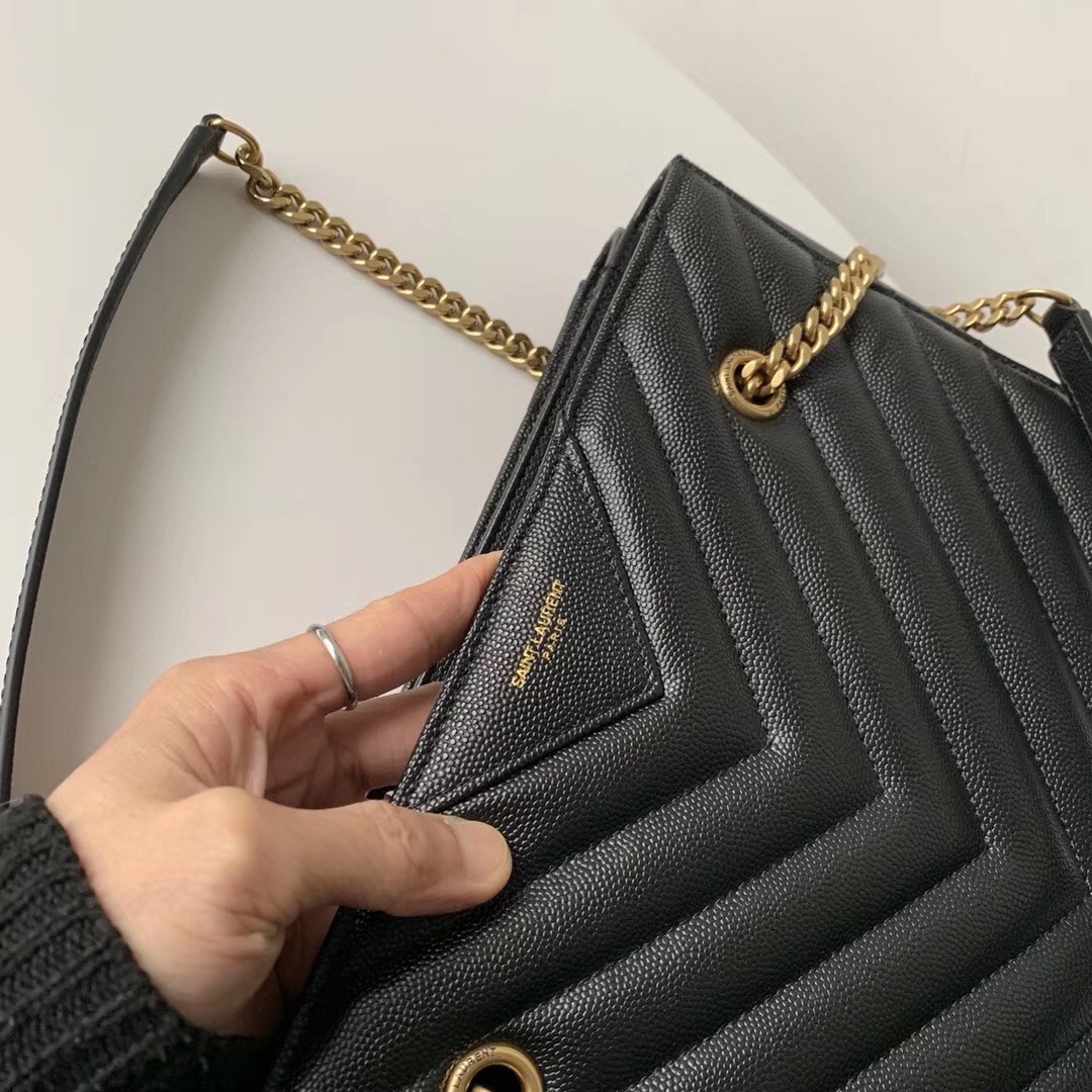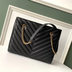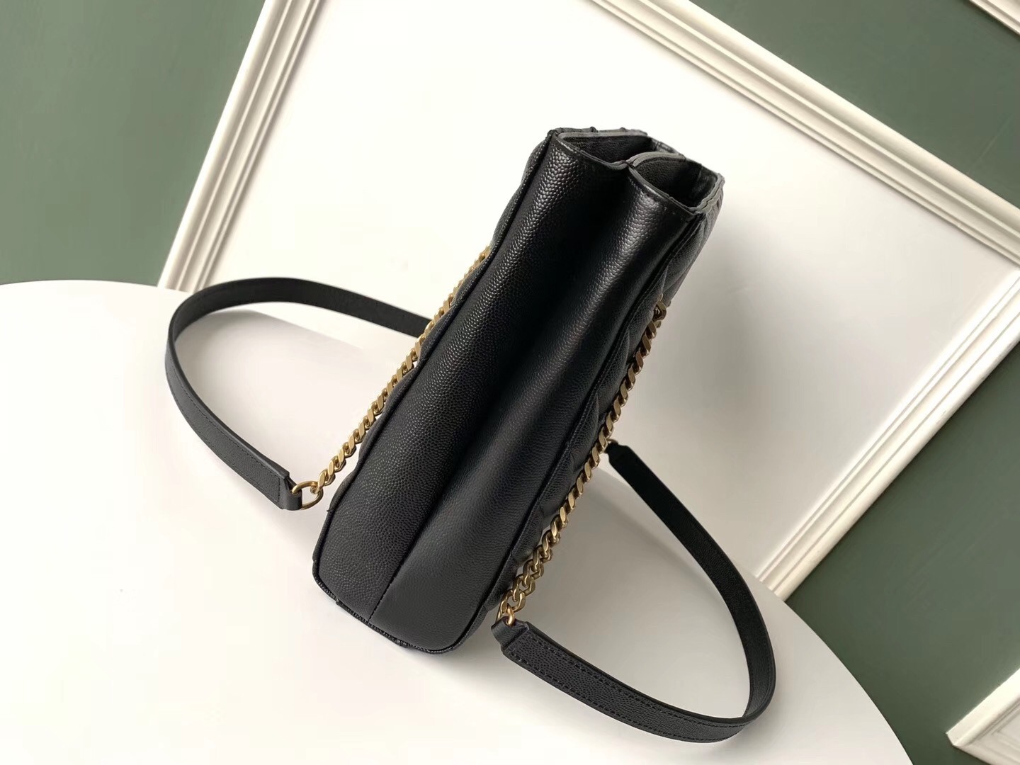 – Leather-reinforced chain handles with 29 cm drop