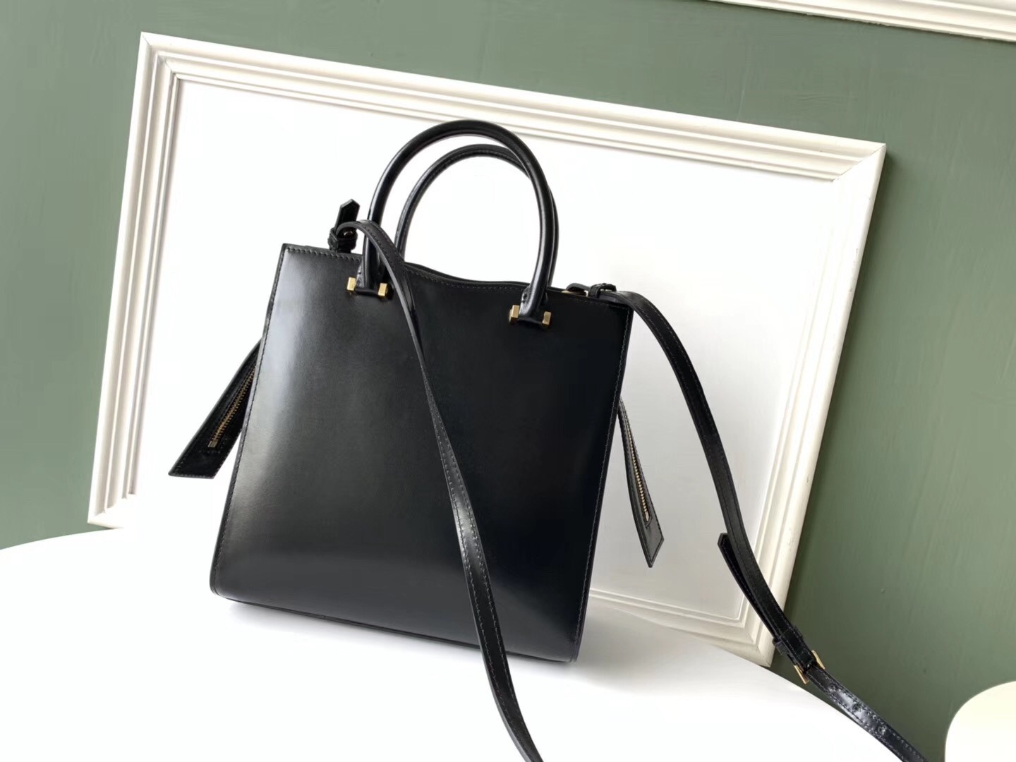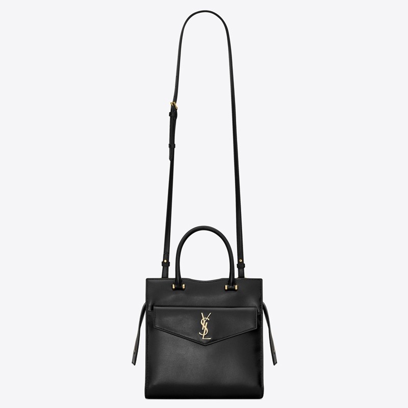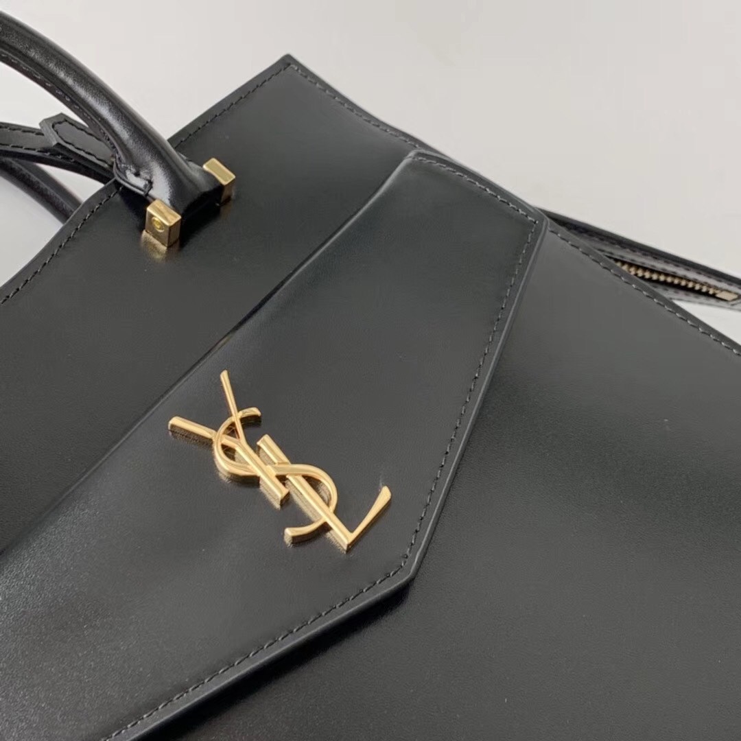 Saint Laurent Small Uptown Tote In Black Calfskin