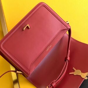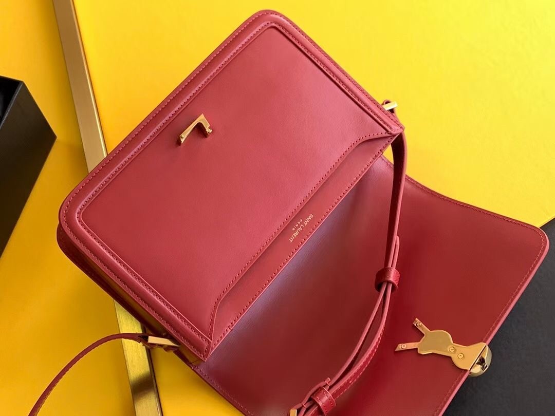– Front flap and pivoting metal YSL closure