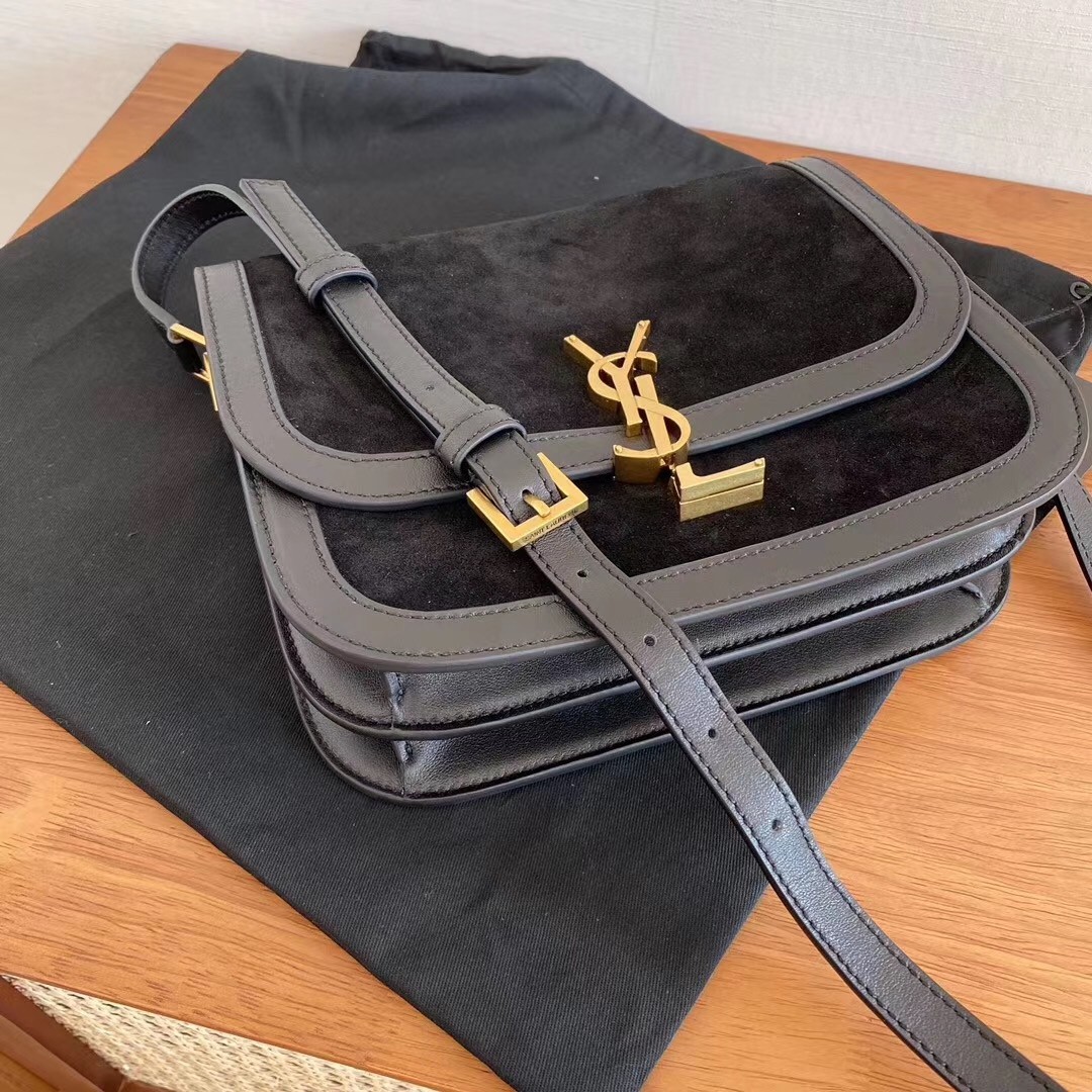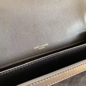 – Front flap and pivoting metal YSL closure