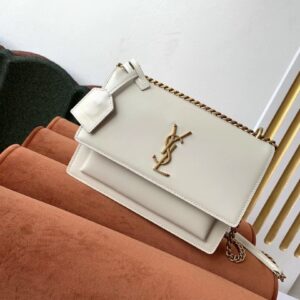 Saint Laurent Sunset Medium Bag In White Calfskin