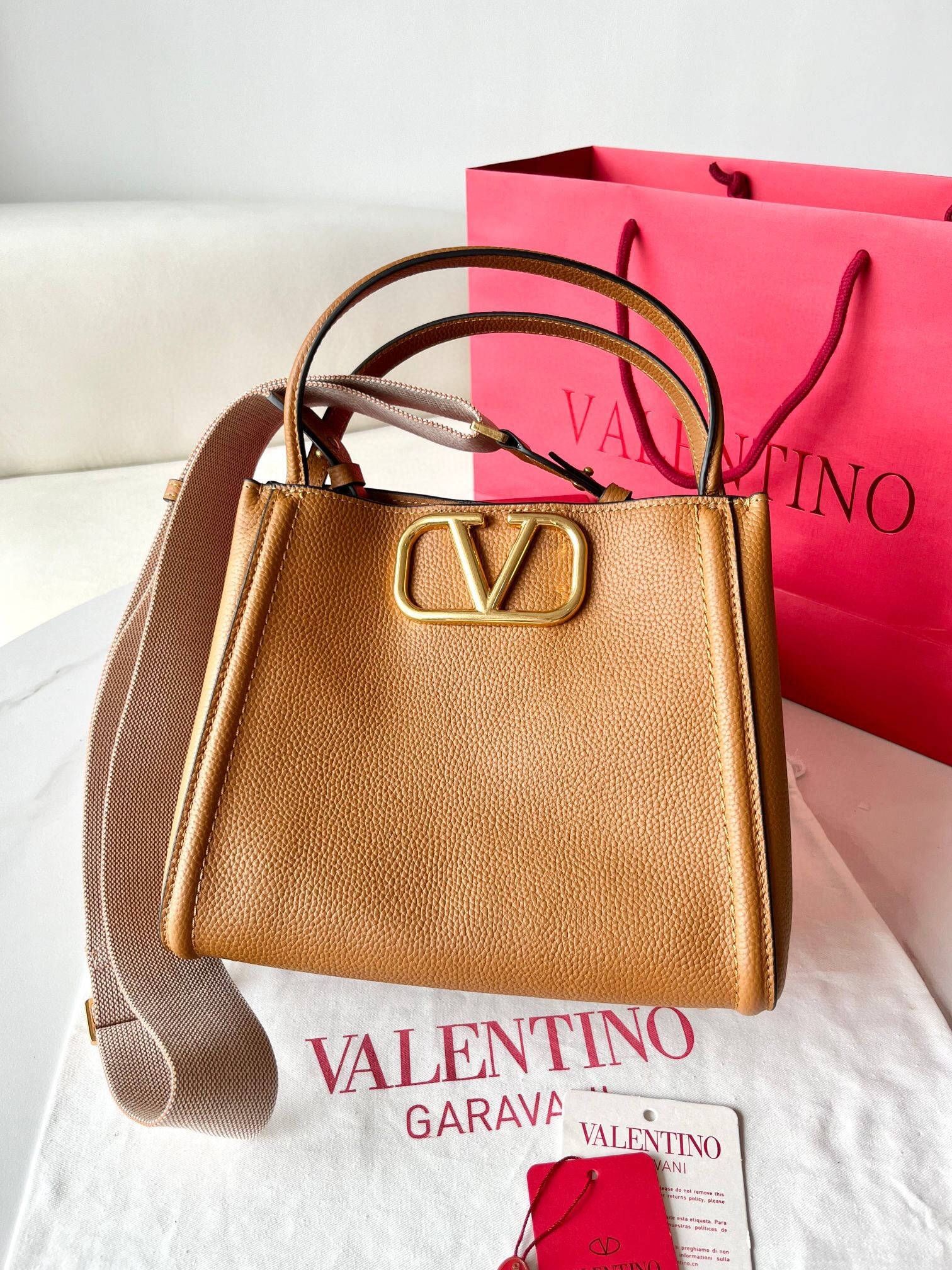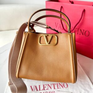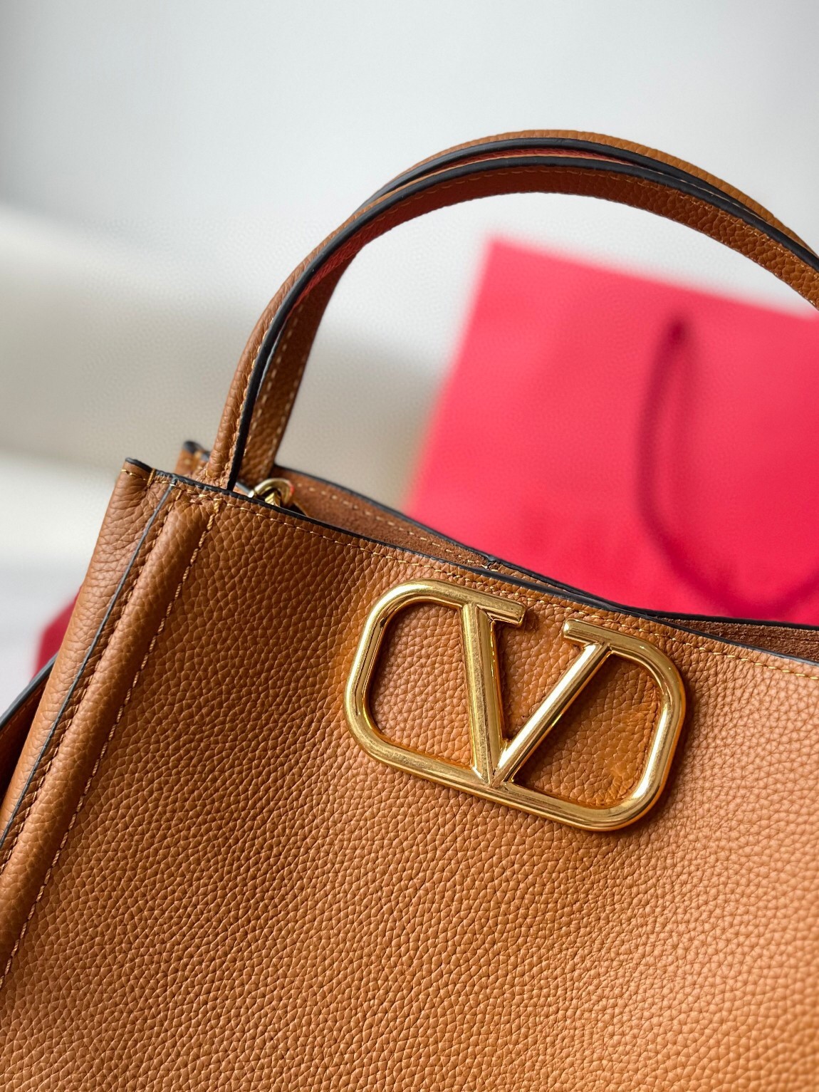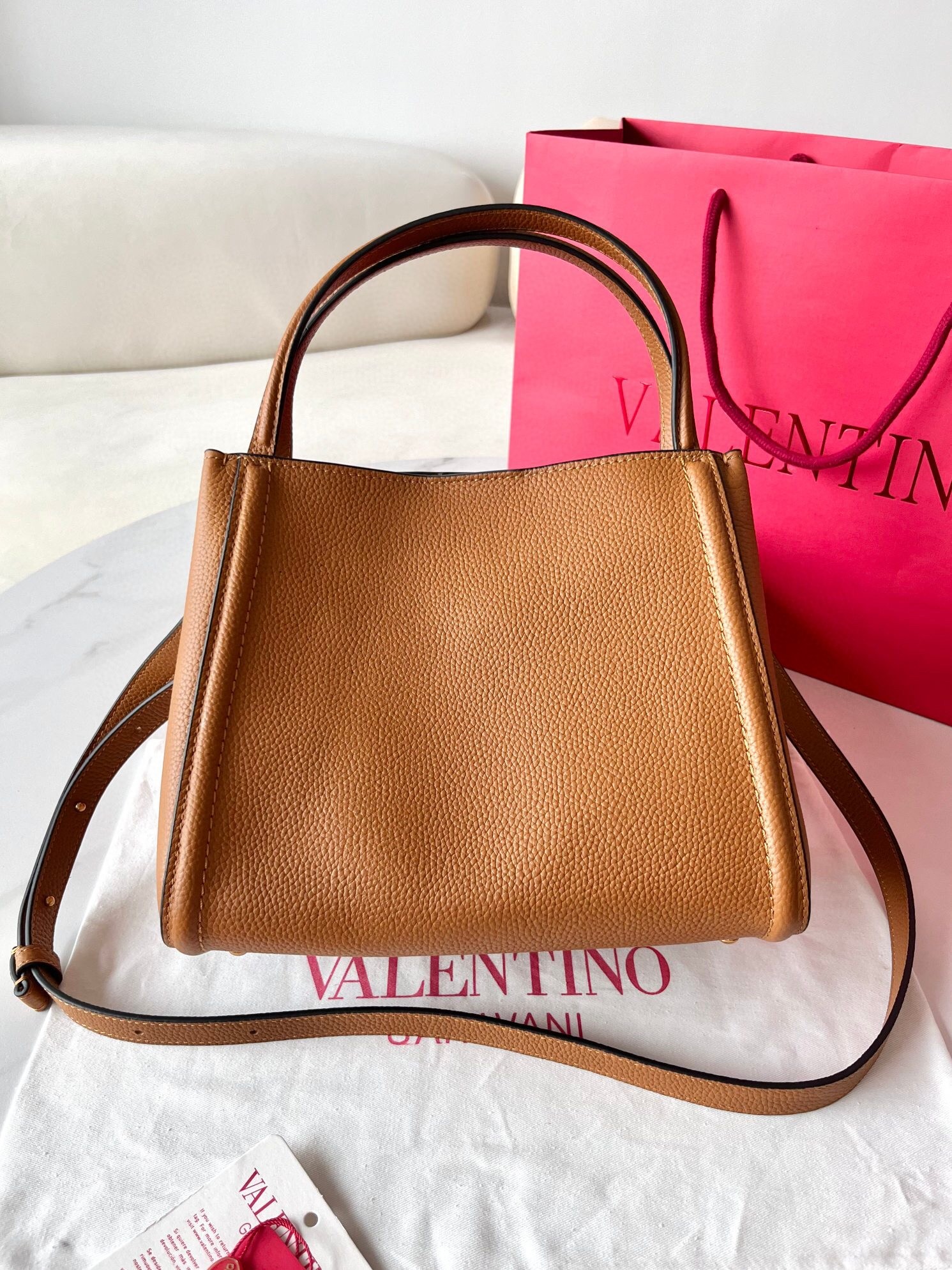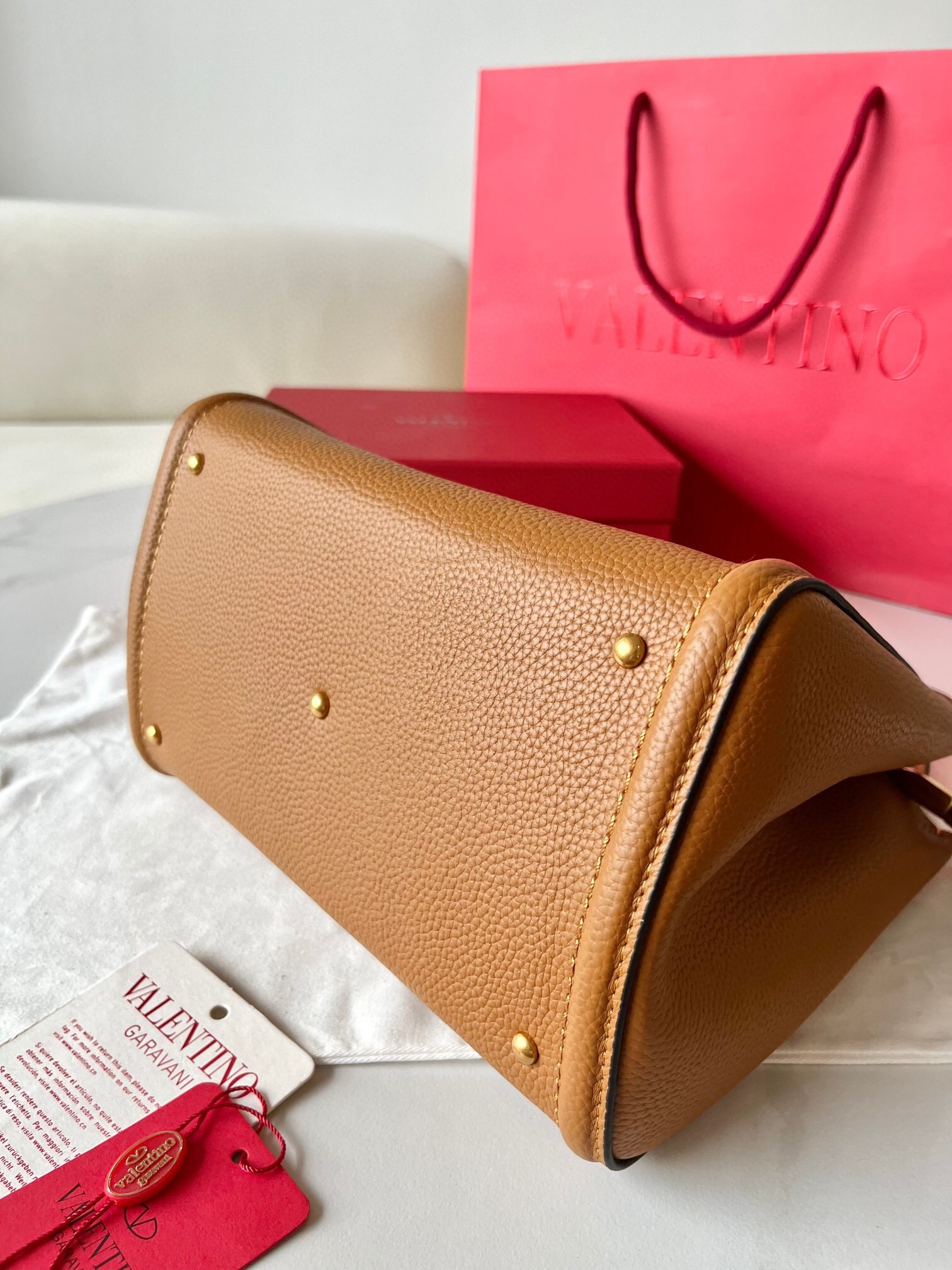 Valentino Alltime Medium Bag in Brown Grained Calfskin