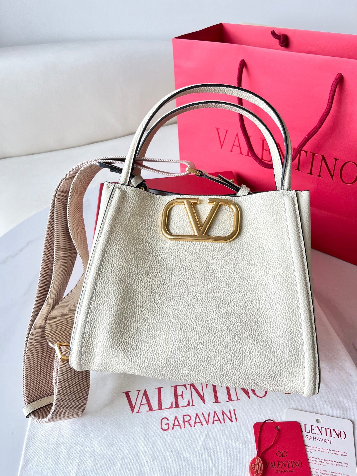 Valentino Alltime Medium Bag in White Grained Calfskin
