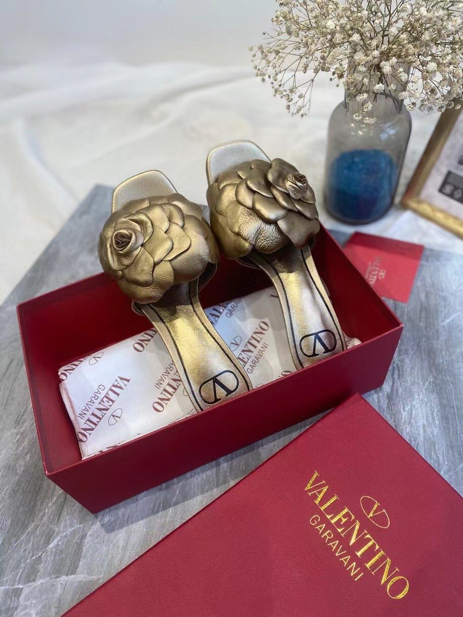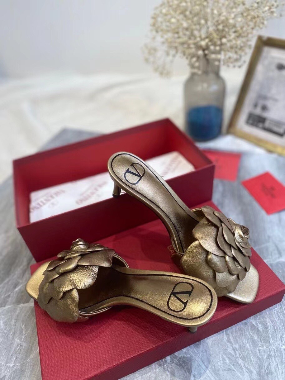 Valentino Atelier Shoes 03 Rose Edition Slide Sandals 55mm Gold