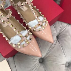 Valentino Caged Rockstud Ballet Flats In Powder Patent Leather