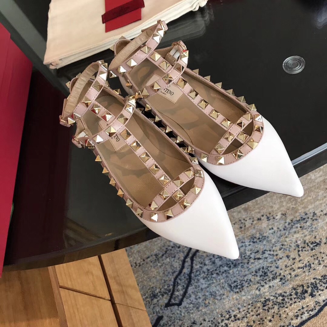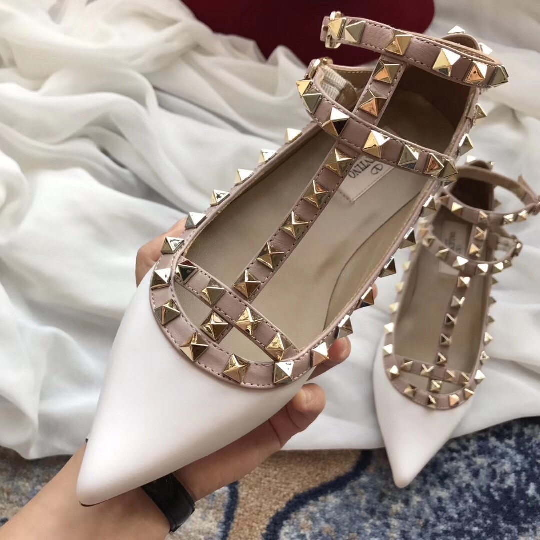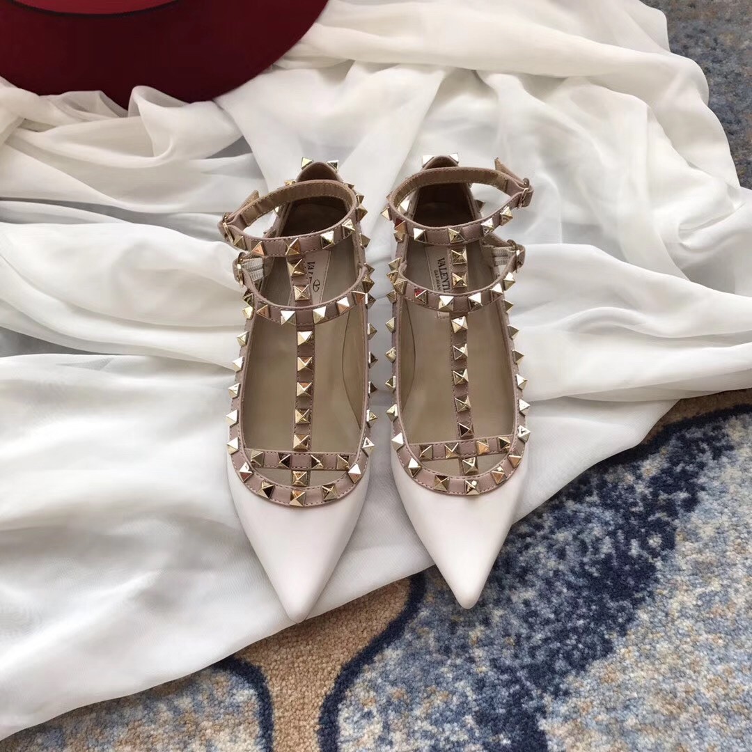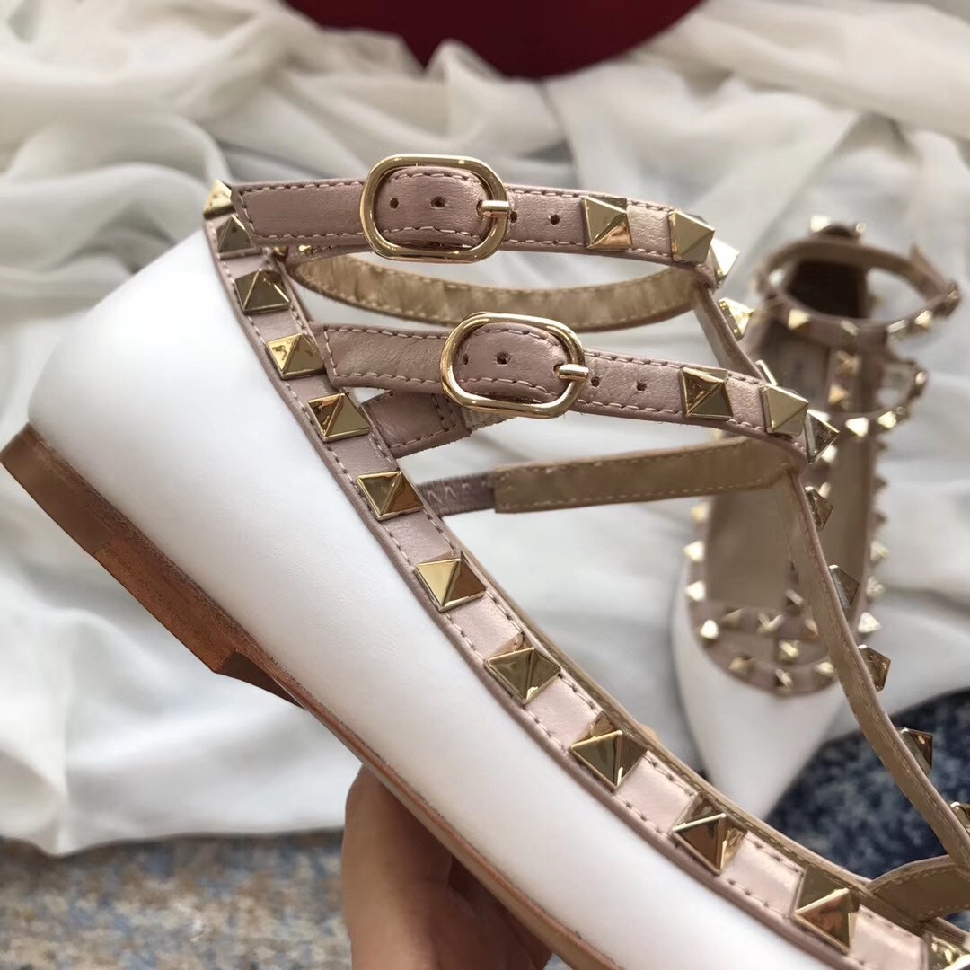 Valentino Caged Rockstud Ballet Flats In White Patent Leather