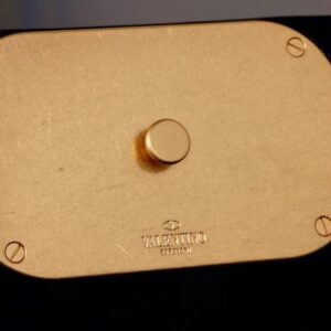 – Antique brass logo and hardware