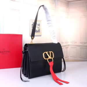 Valentino Garavani Black Medium VRing Shoulder Bag