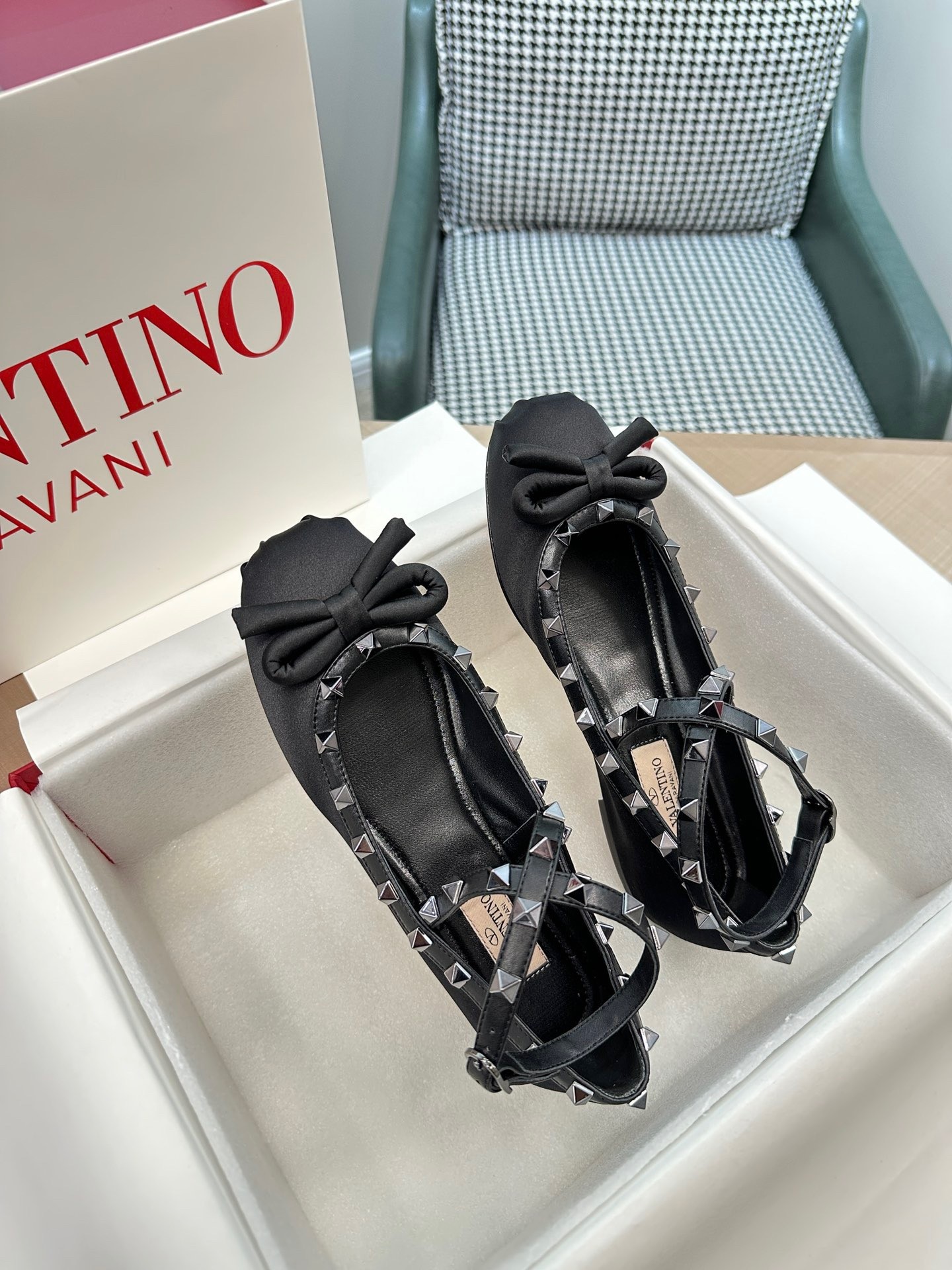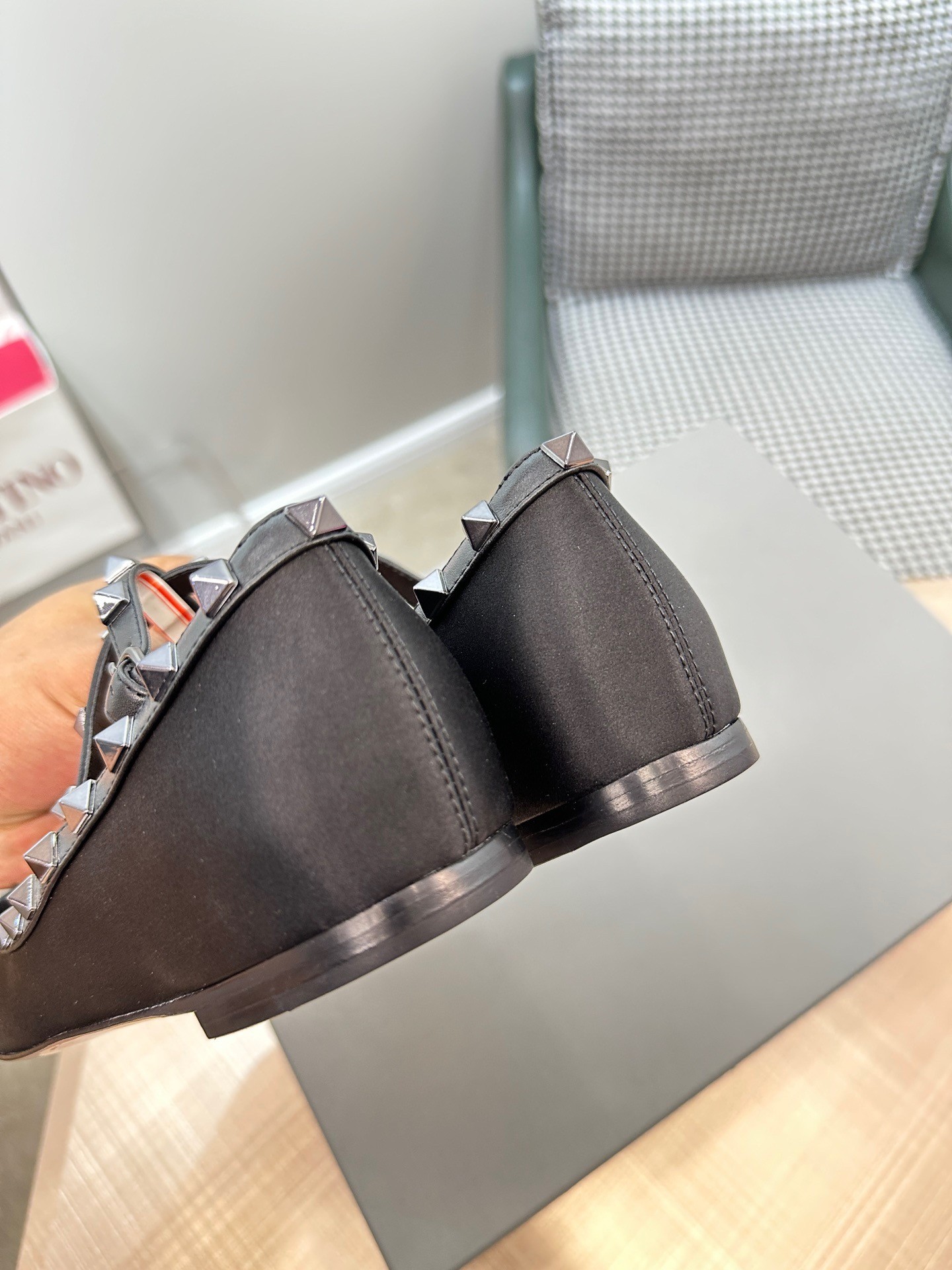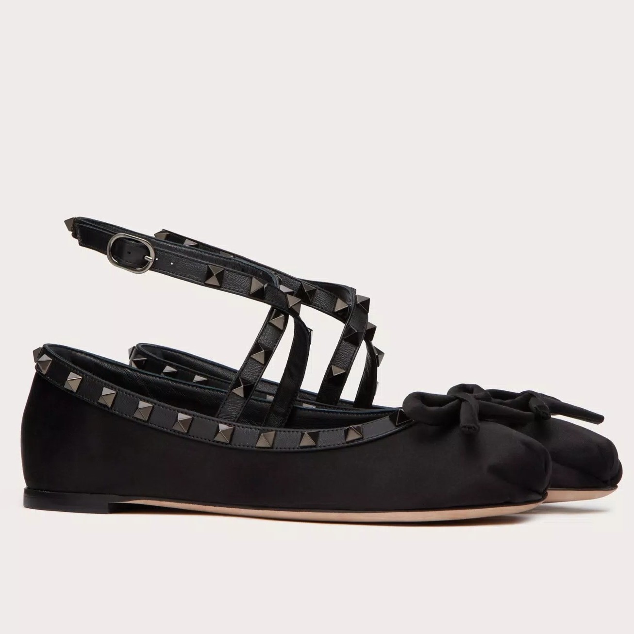 Valentino Garavani Rockstud Ballerina In Black Satin