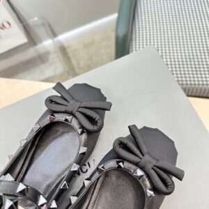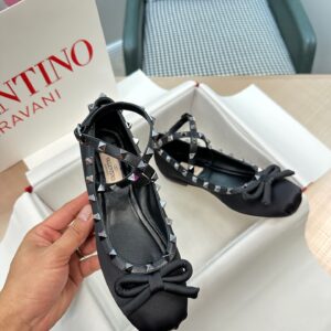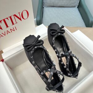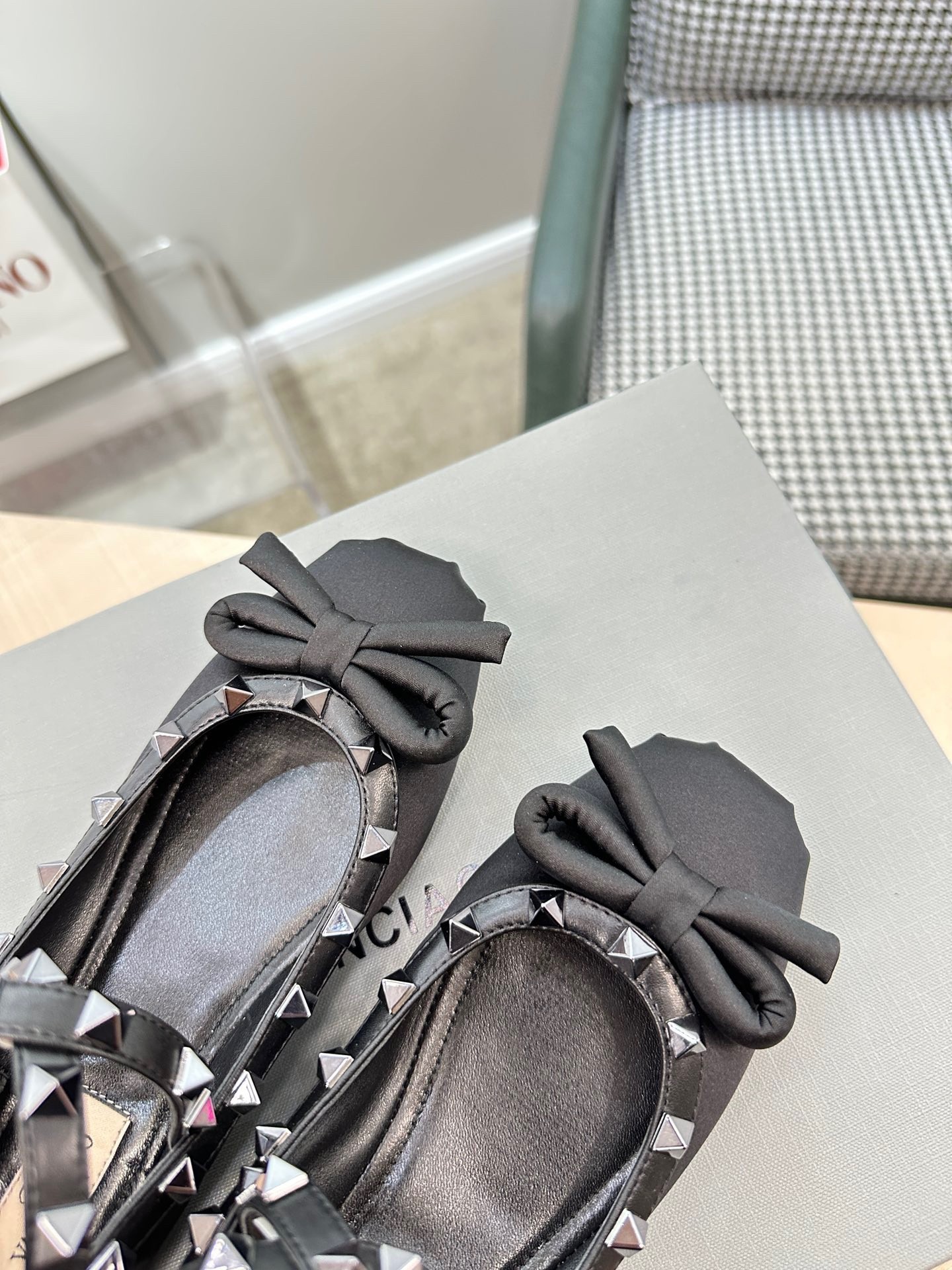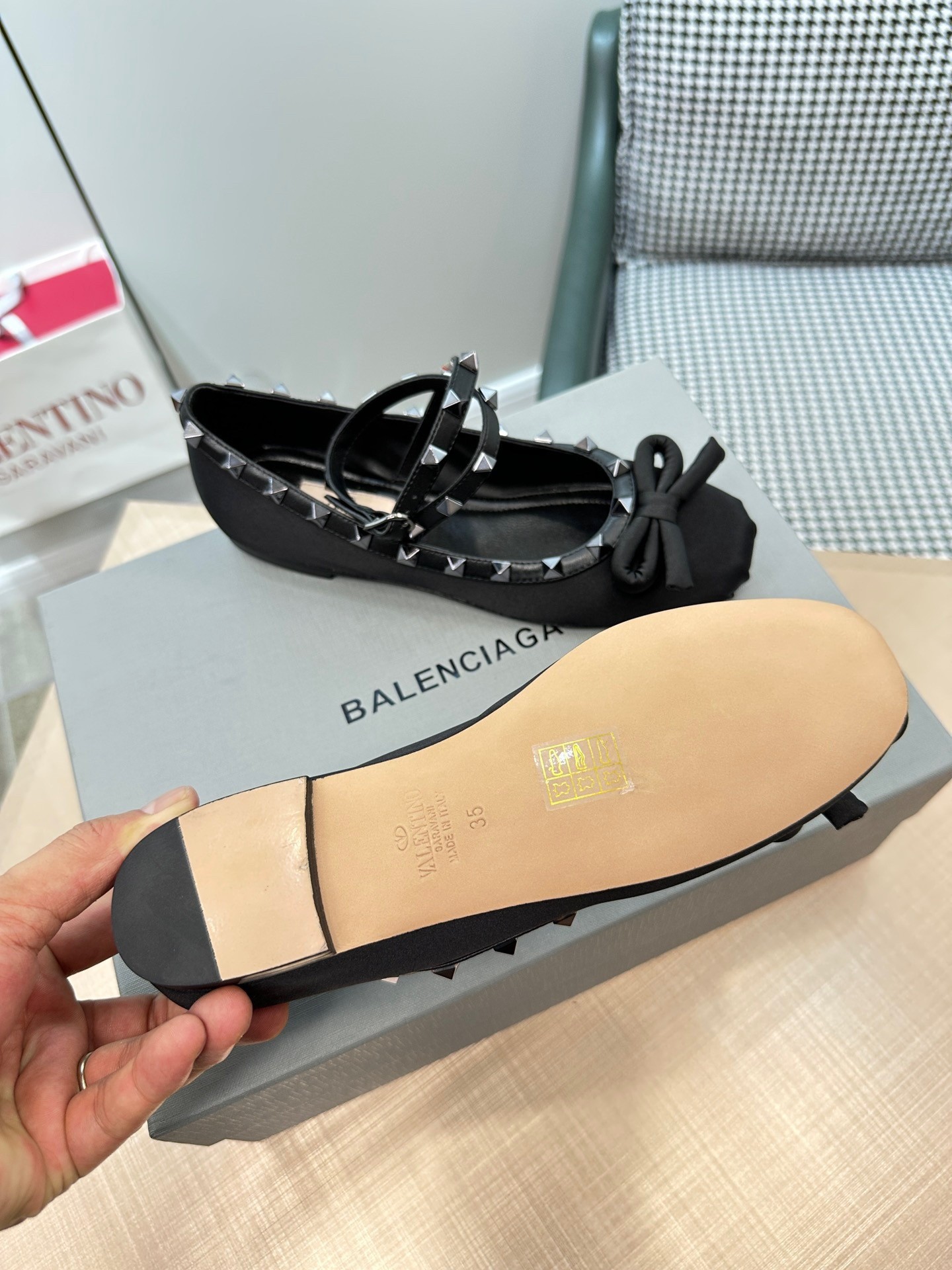Valentino Garavani Rockstud Ballerina In Black Satin