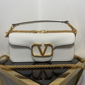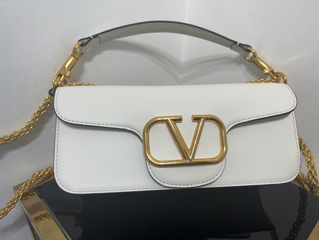 Valentino Loco Large Shoulder Bag In White Calfskin