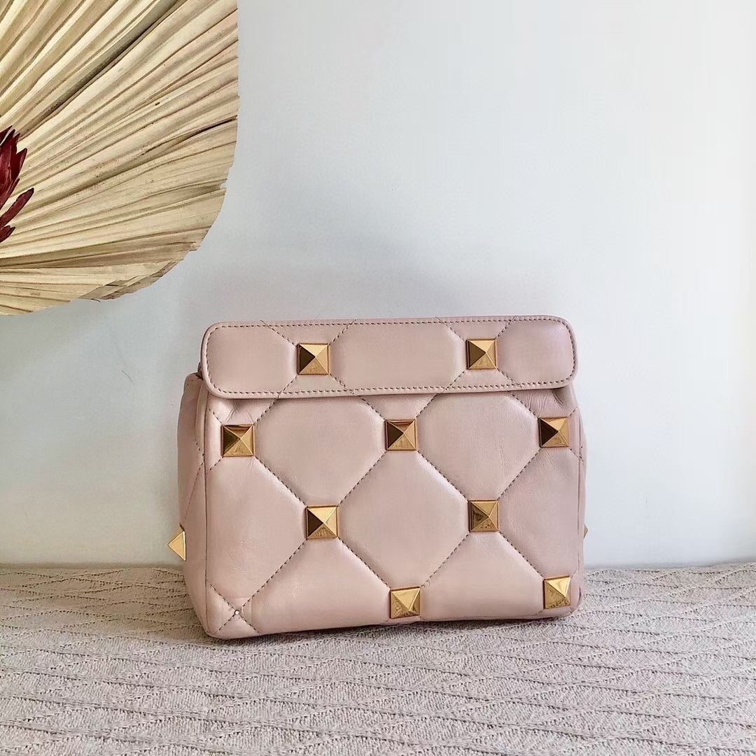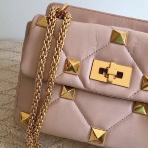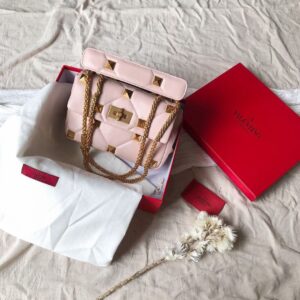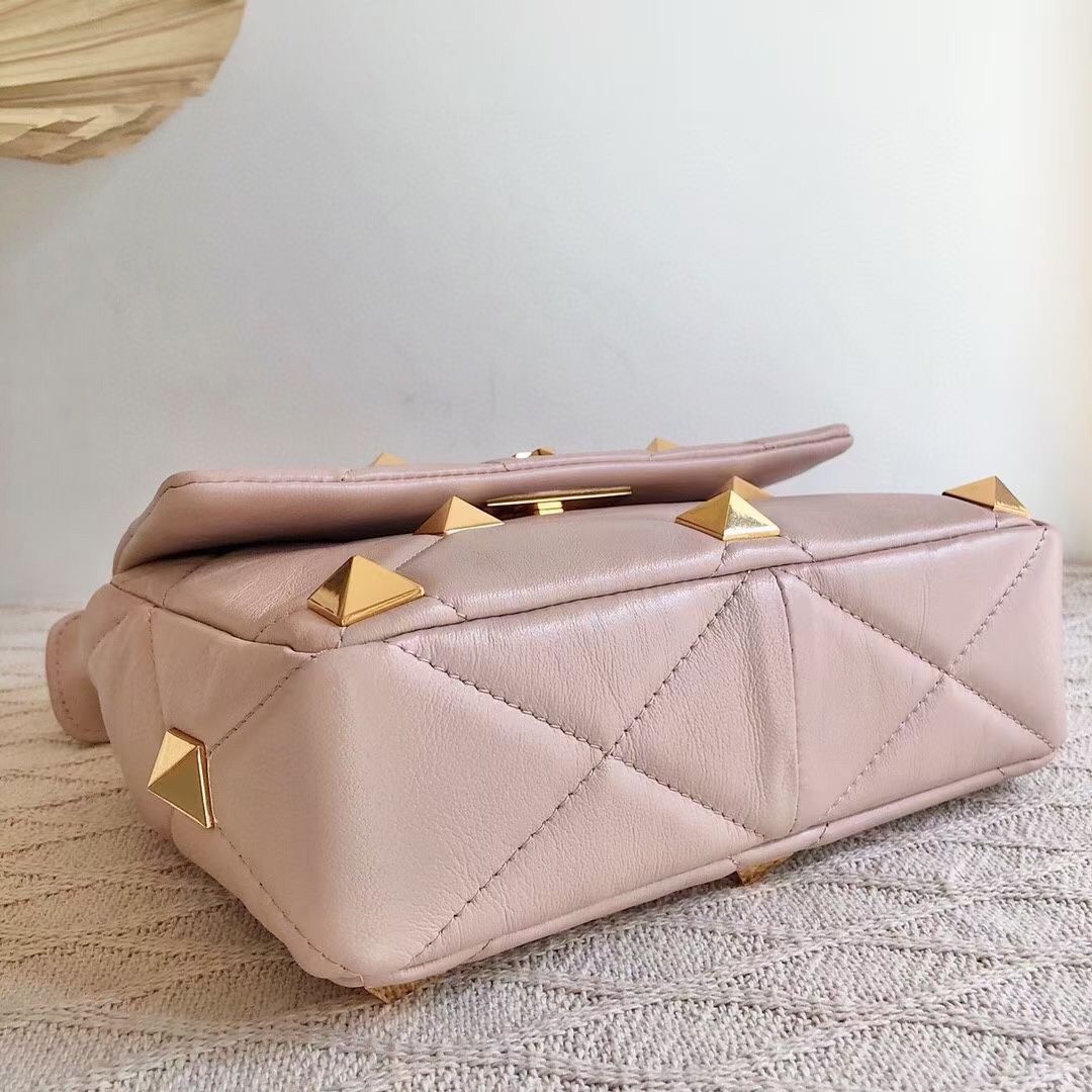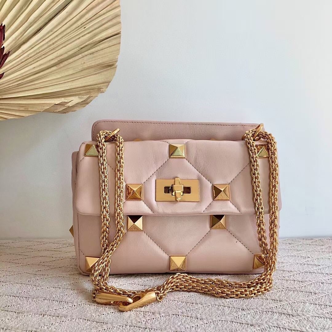 Valentino Medium Roman Stud Chain Bag In Pink Nappa