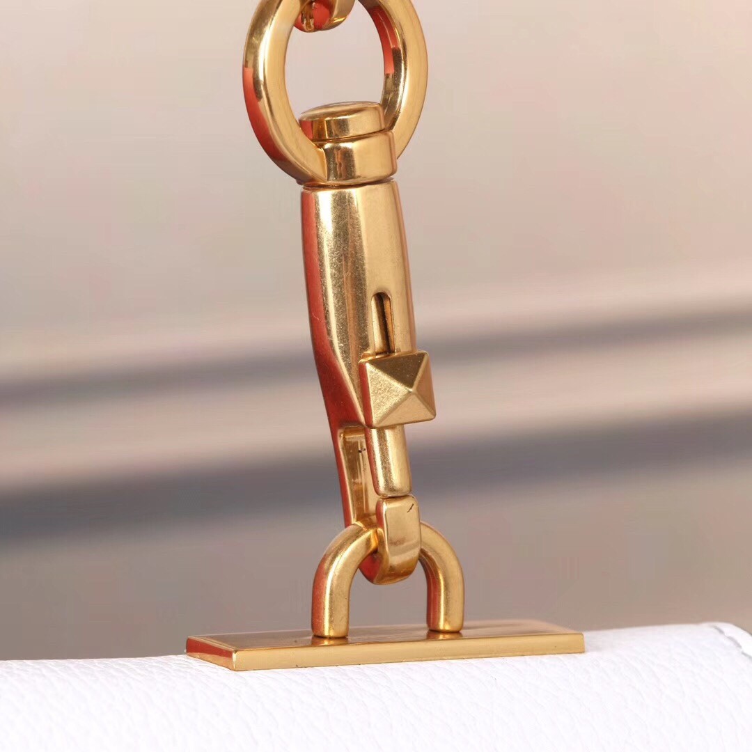 Valentino Medium VRing Chain Bag In White Grainy Calfskin