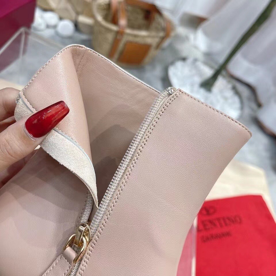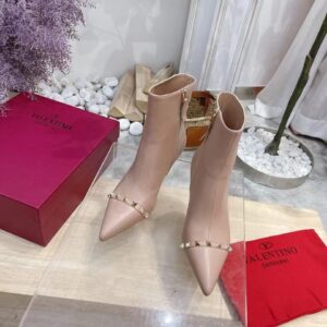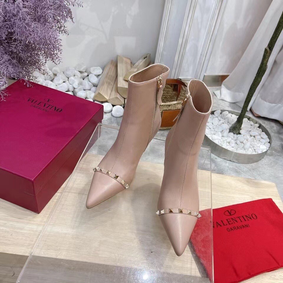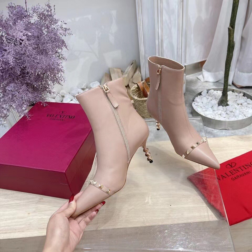 Valentino Nude Rockstud Ankle Boots with Sculpted Heel