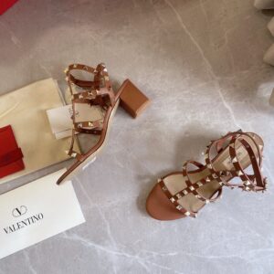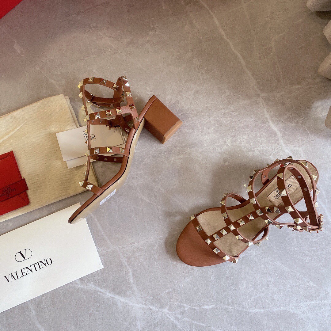 Valentino Rockstud Ankle Strap Sandals 60mm In Brown Calfskin
