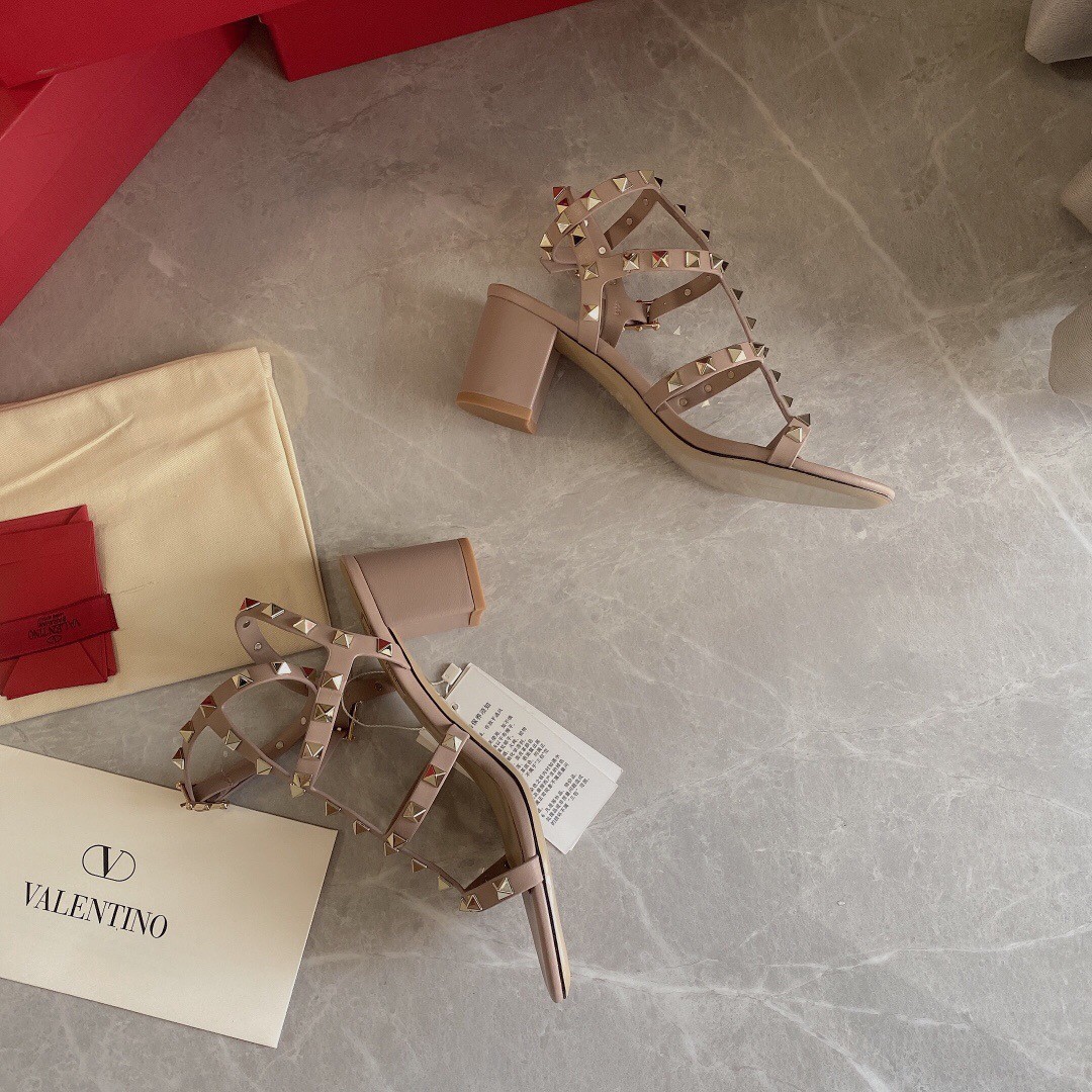 Valentino Rockstud Ankle Strap Sandals 60mm In Poudre Calfskin