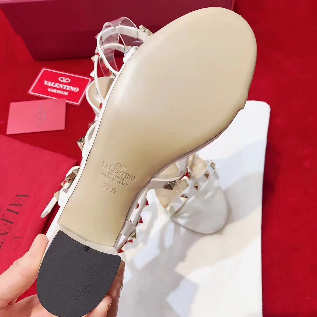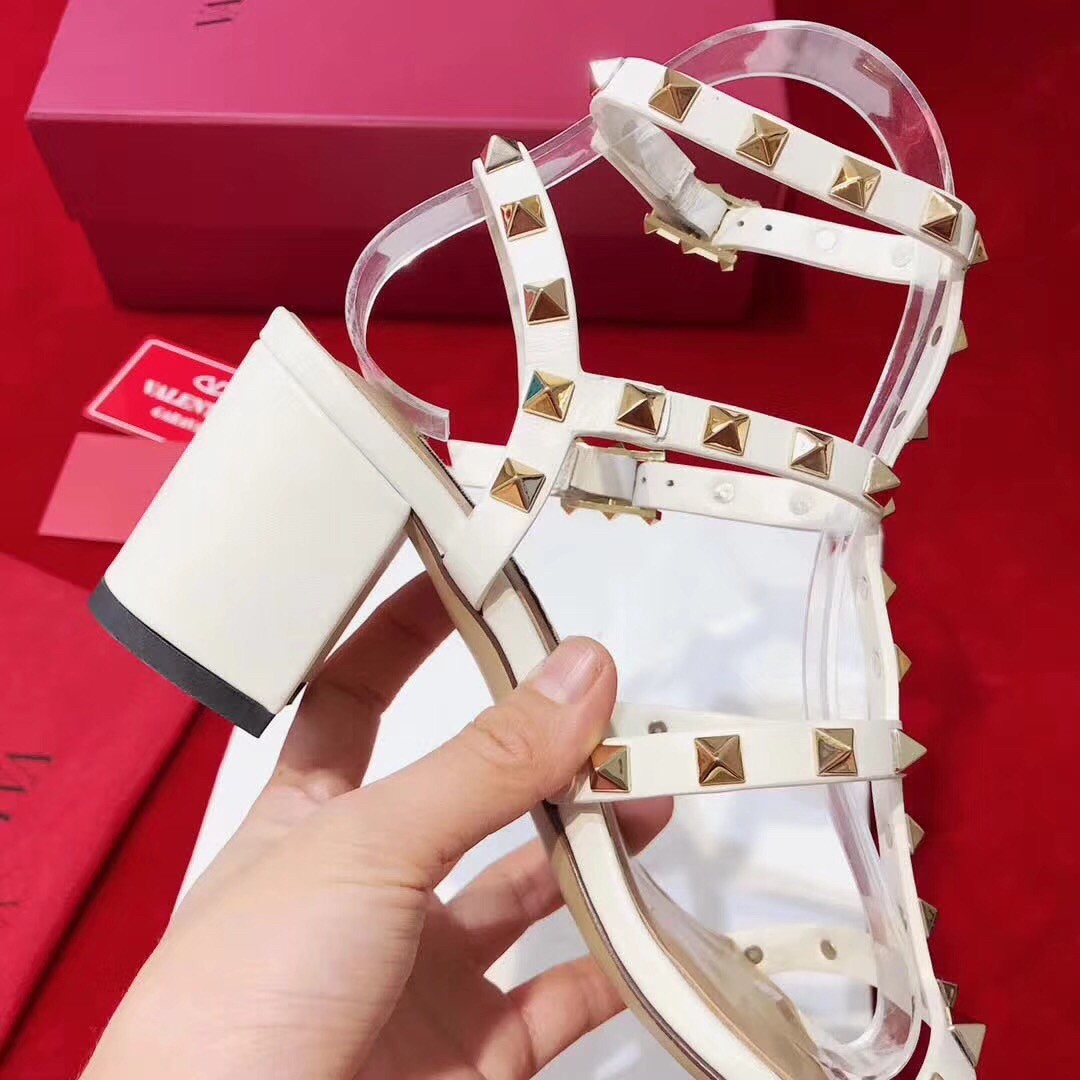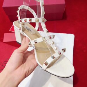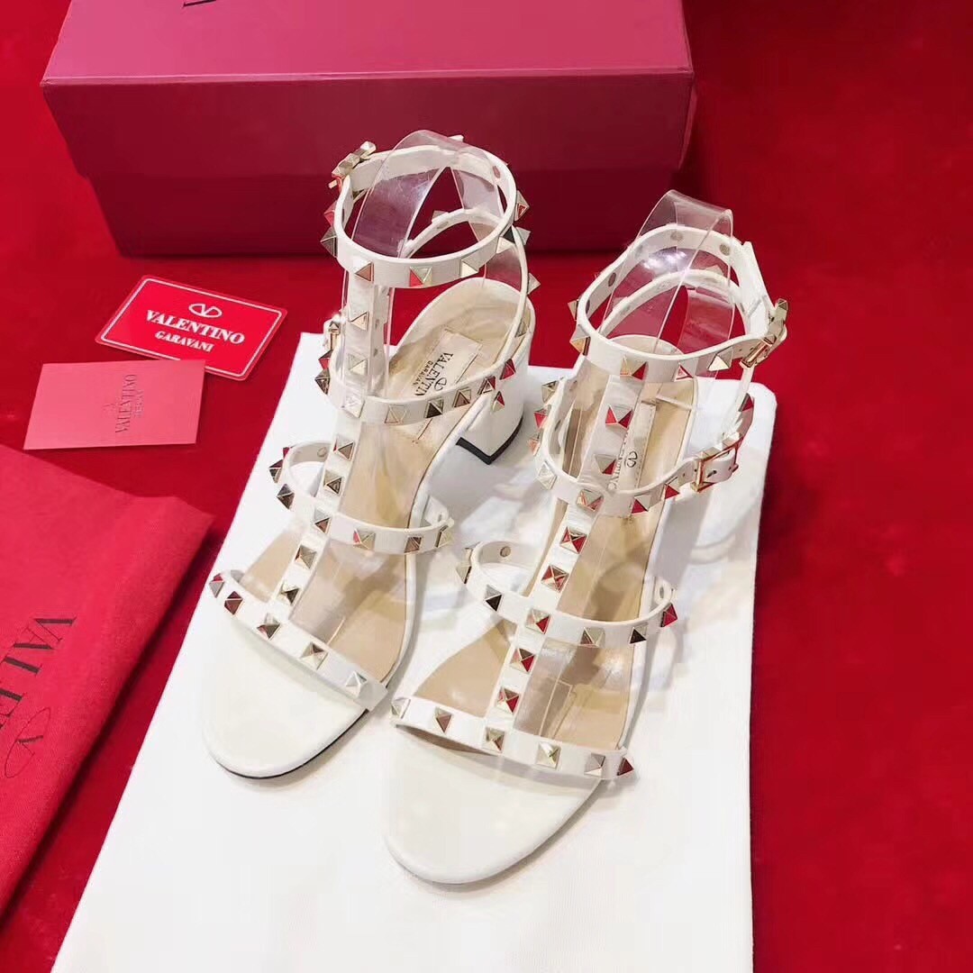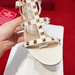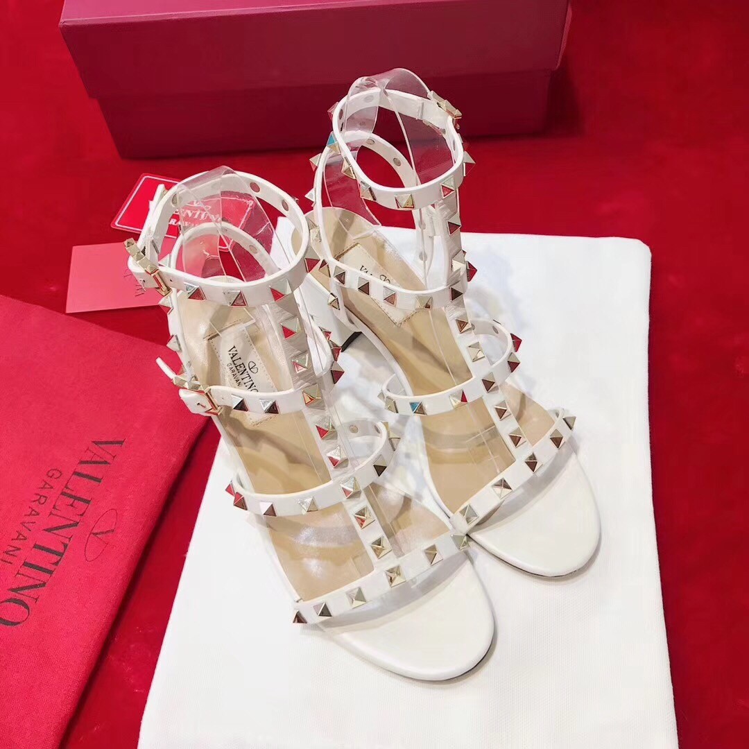 Valentino Rockstud Ankle Strap Sandals 60mm In White Calfskin