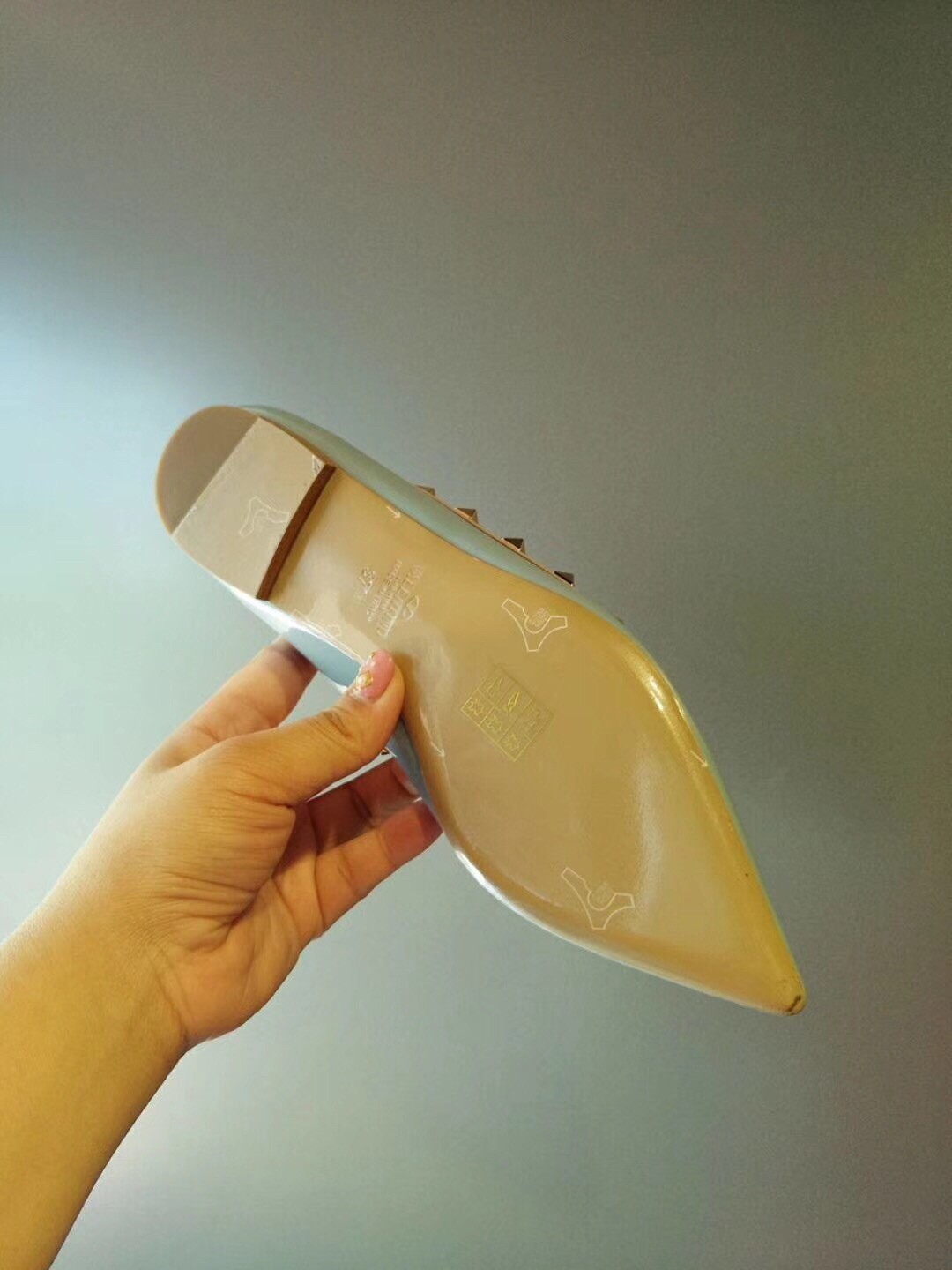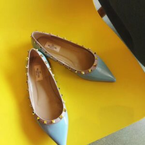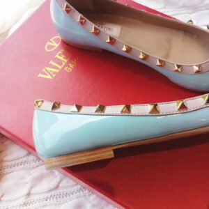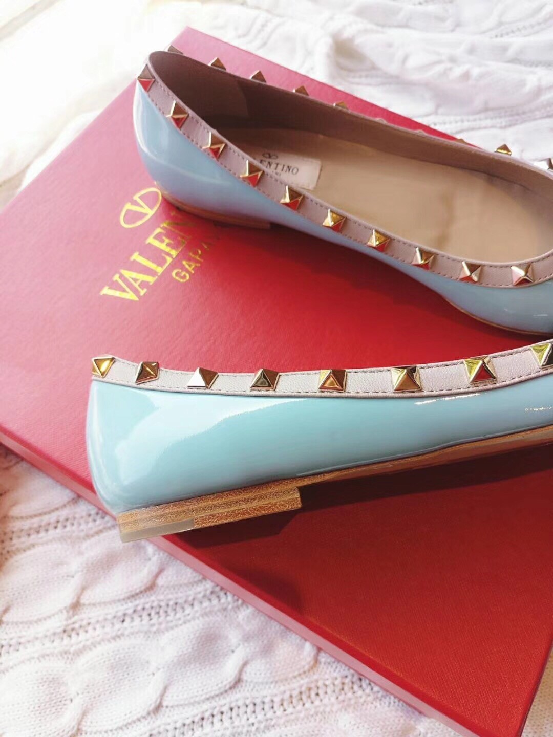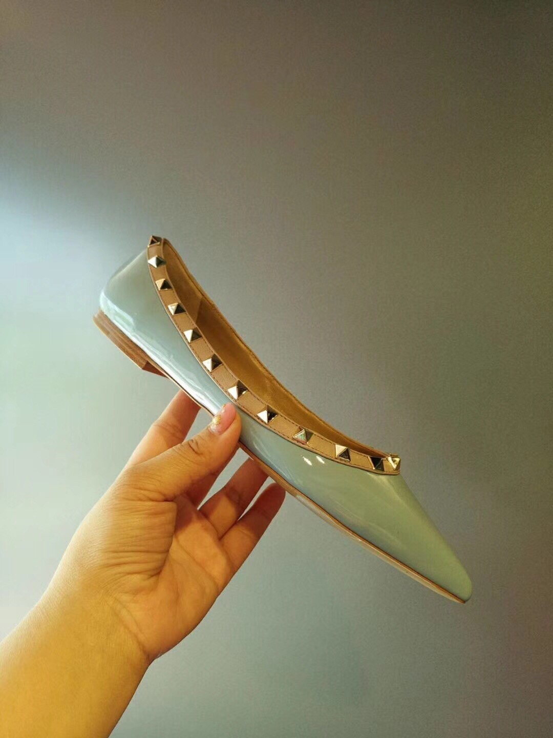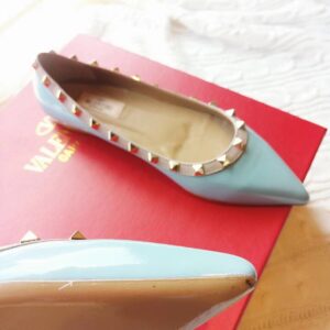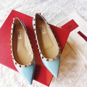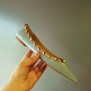 Valentino Rockstud Ballet Flats In Light Blue Patent Leather