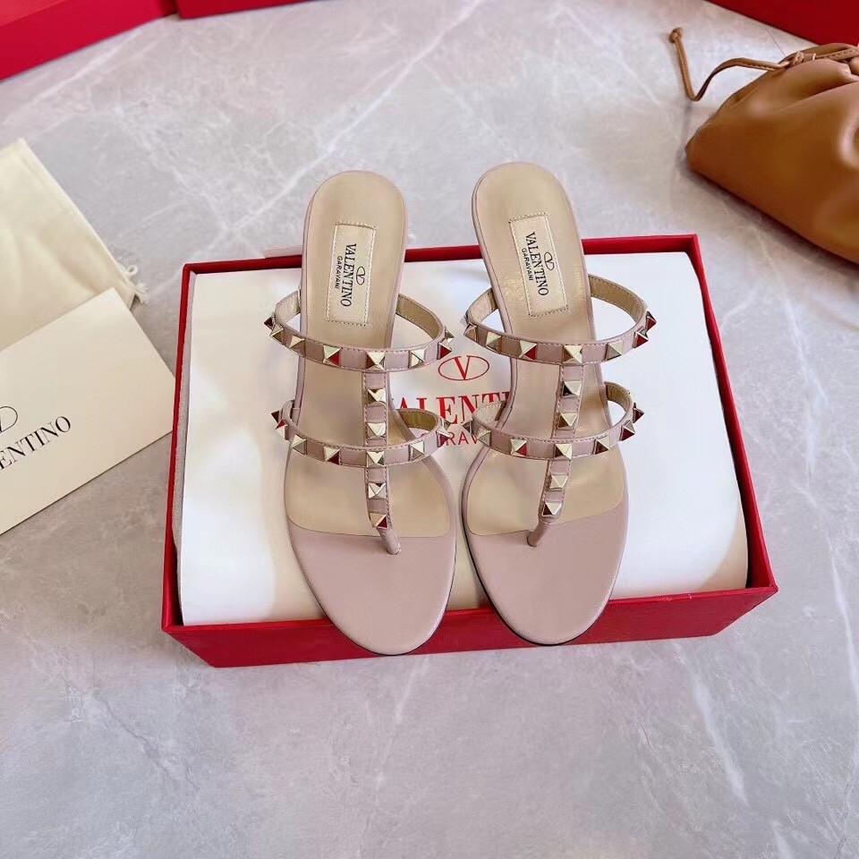 Valentino Rockstud Flip Flop Sandals 50mm In Poudre Calfskin