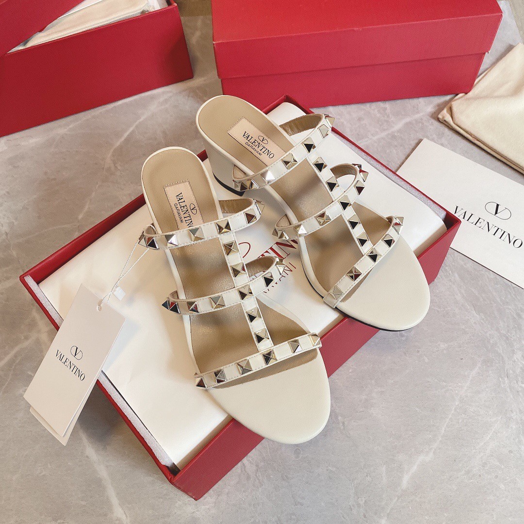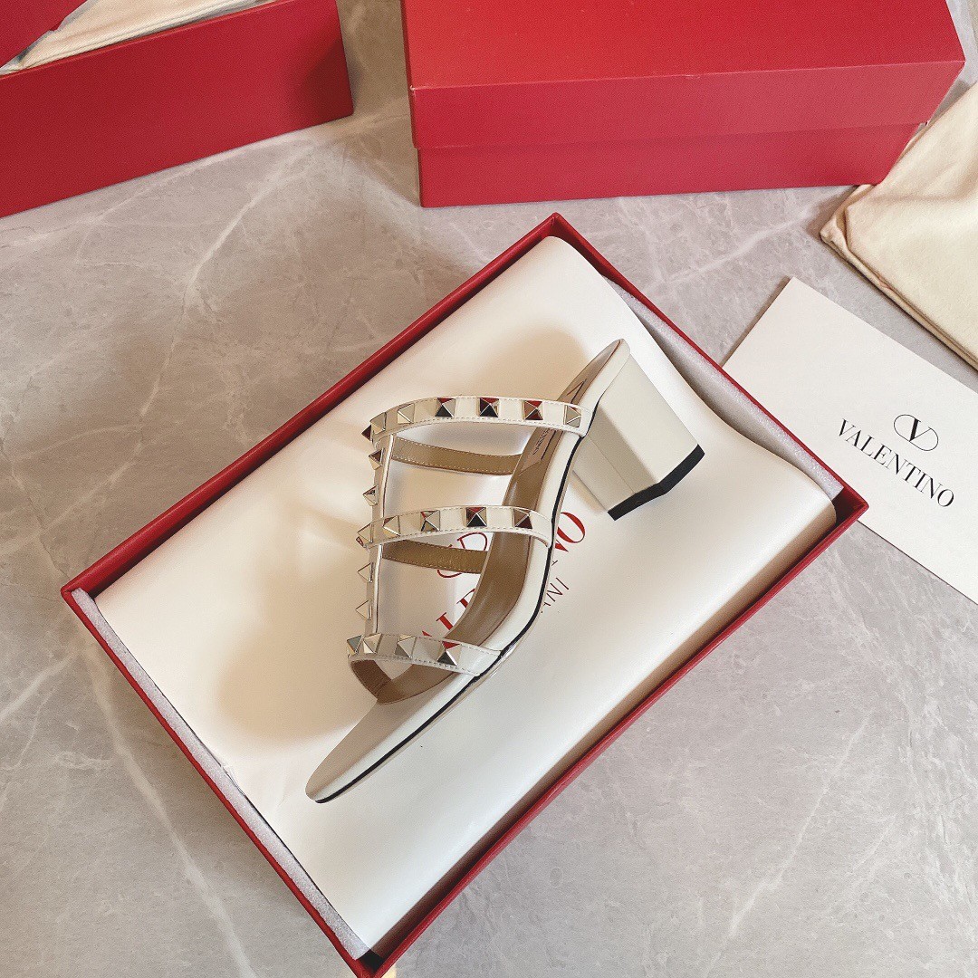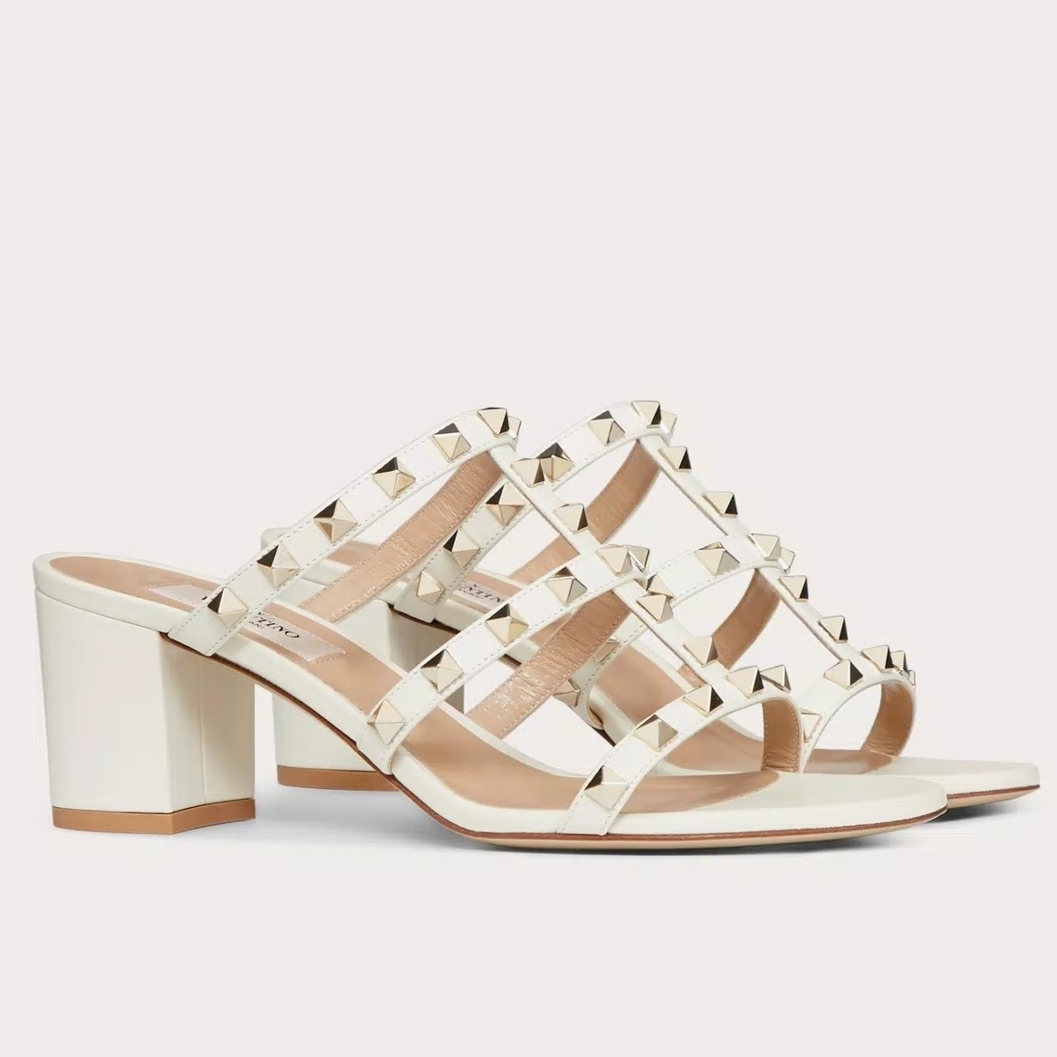 Valentino Rockstud Slide Sandals 60mm In White Calfskin