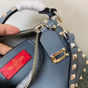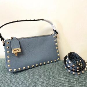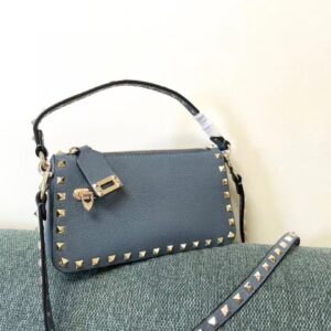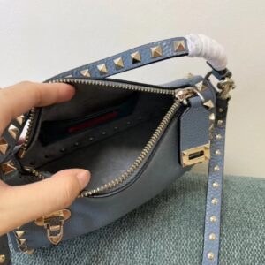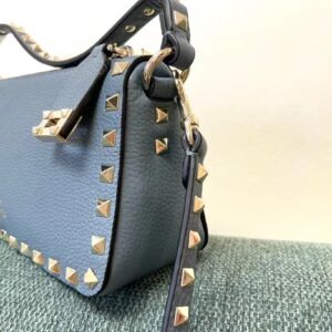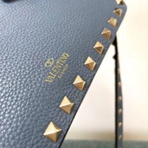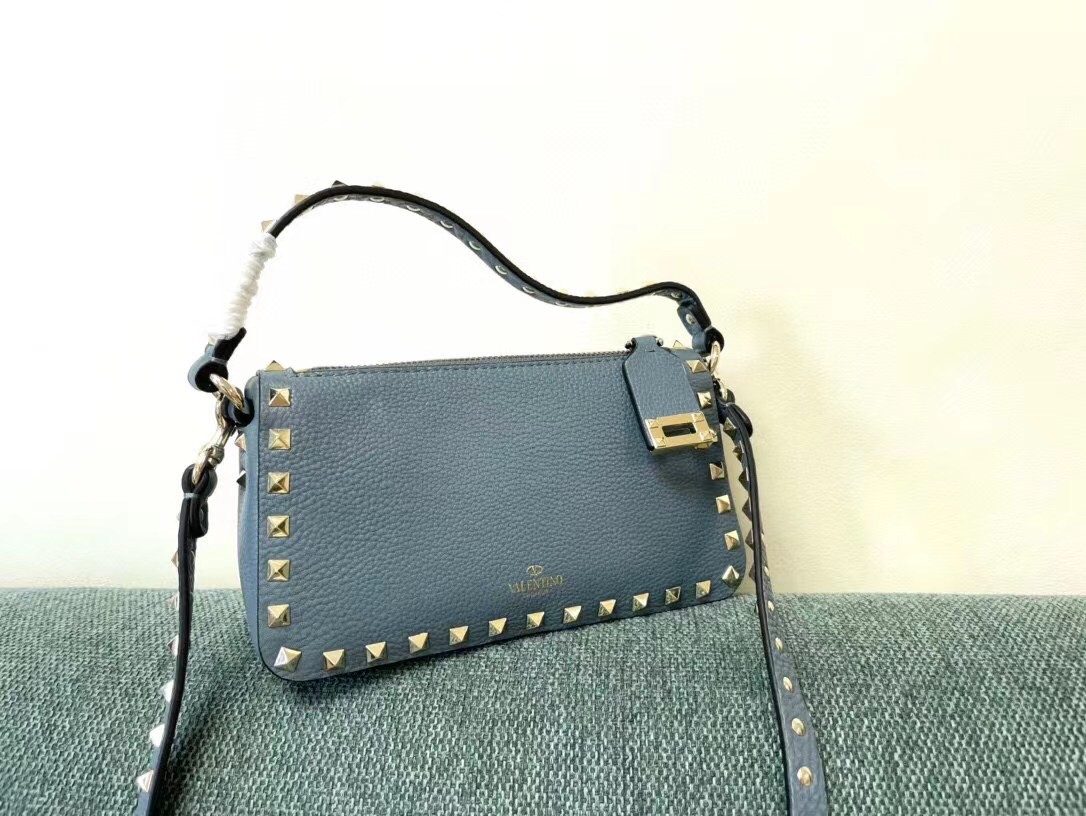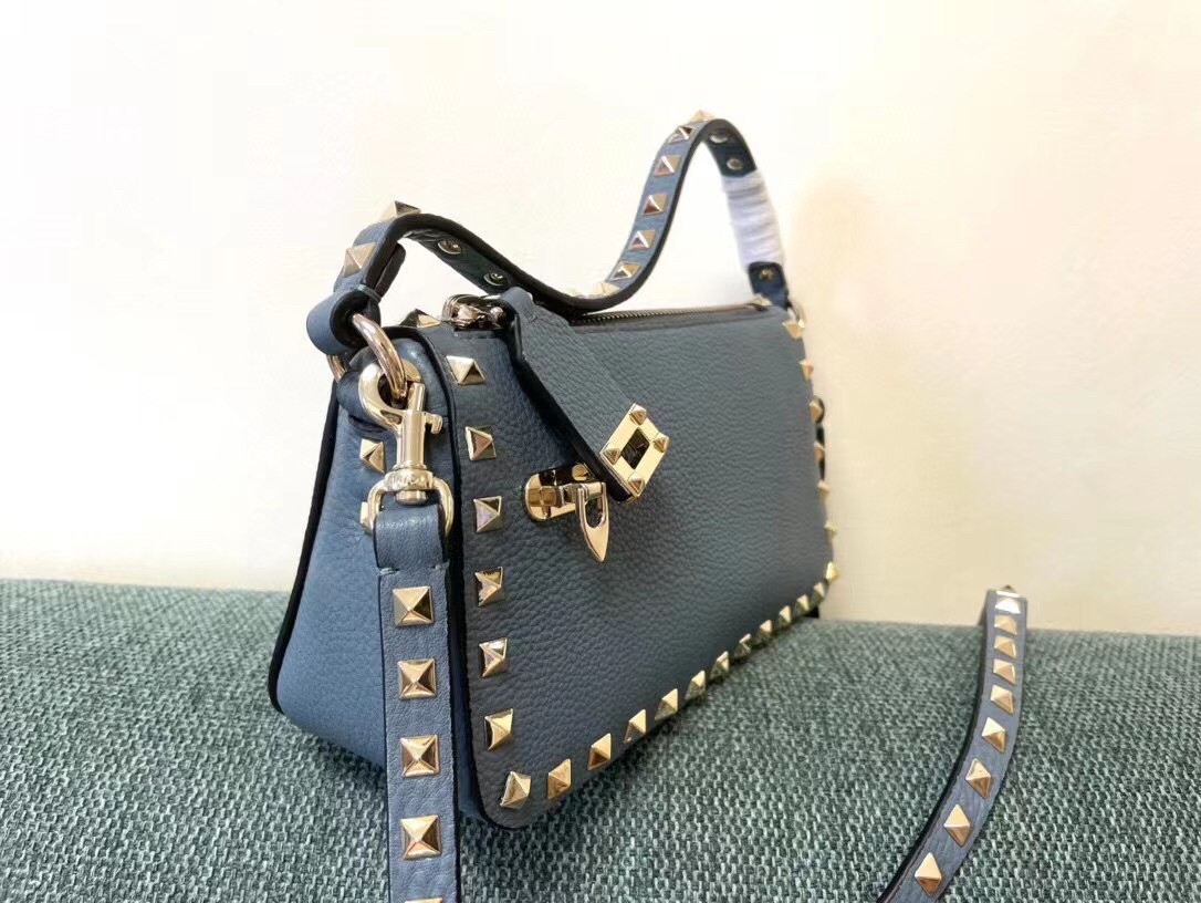Valentino Rockstud Small Crossbody Bag In Blue Grained Calfskin