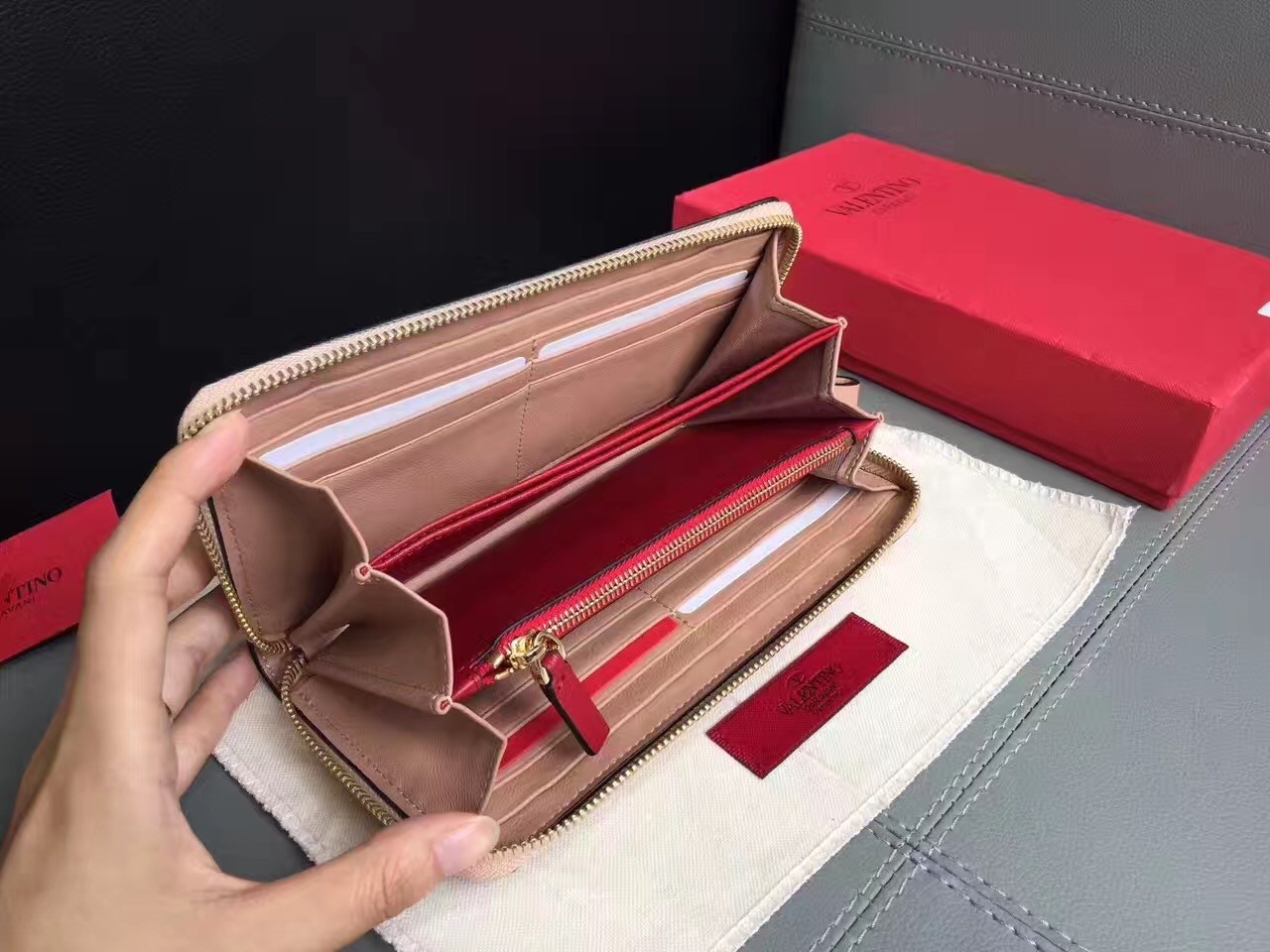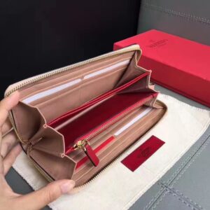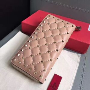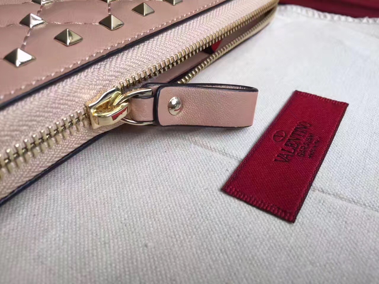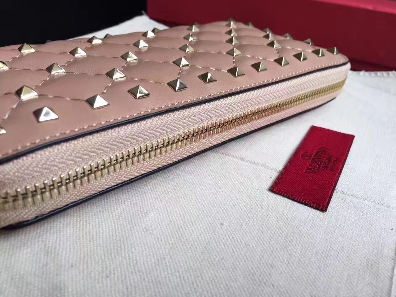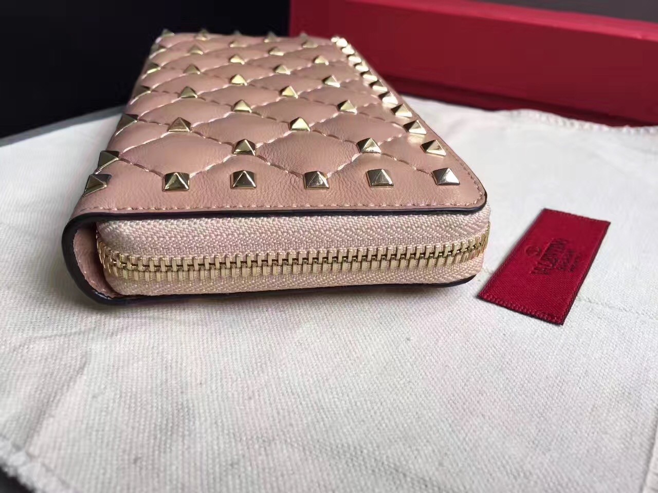 Valentino Rockstud Spike Zip Wallet In Pastel Pink Lambskin